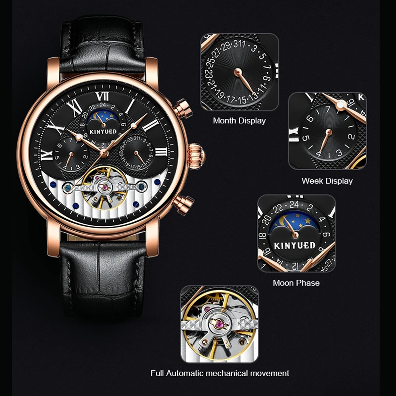 Автоматические часы-скелетоны KINYUED, мужские механические часы с ...