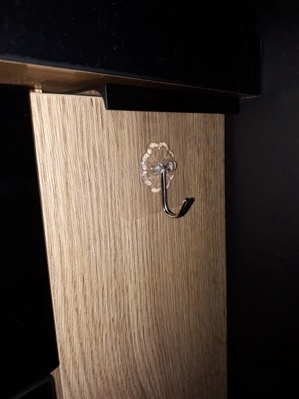 крючки на вид хорошенькие, практически не заметные. крепятся не очень. вешала детскую зимнюю куртку отвалился на 2ой день, школыные брюки + рубашку на вешалке выдерживает. на кухне с полотенцем держится, а с разделочной доской отлепился.