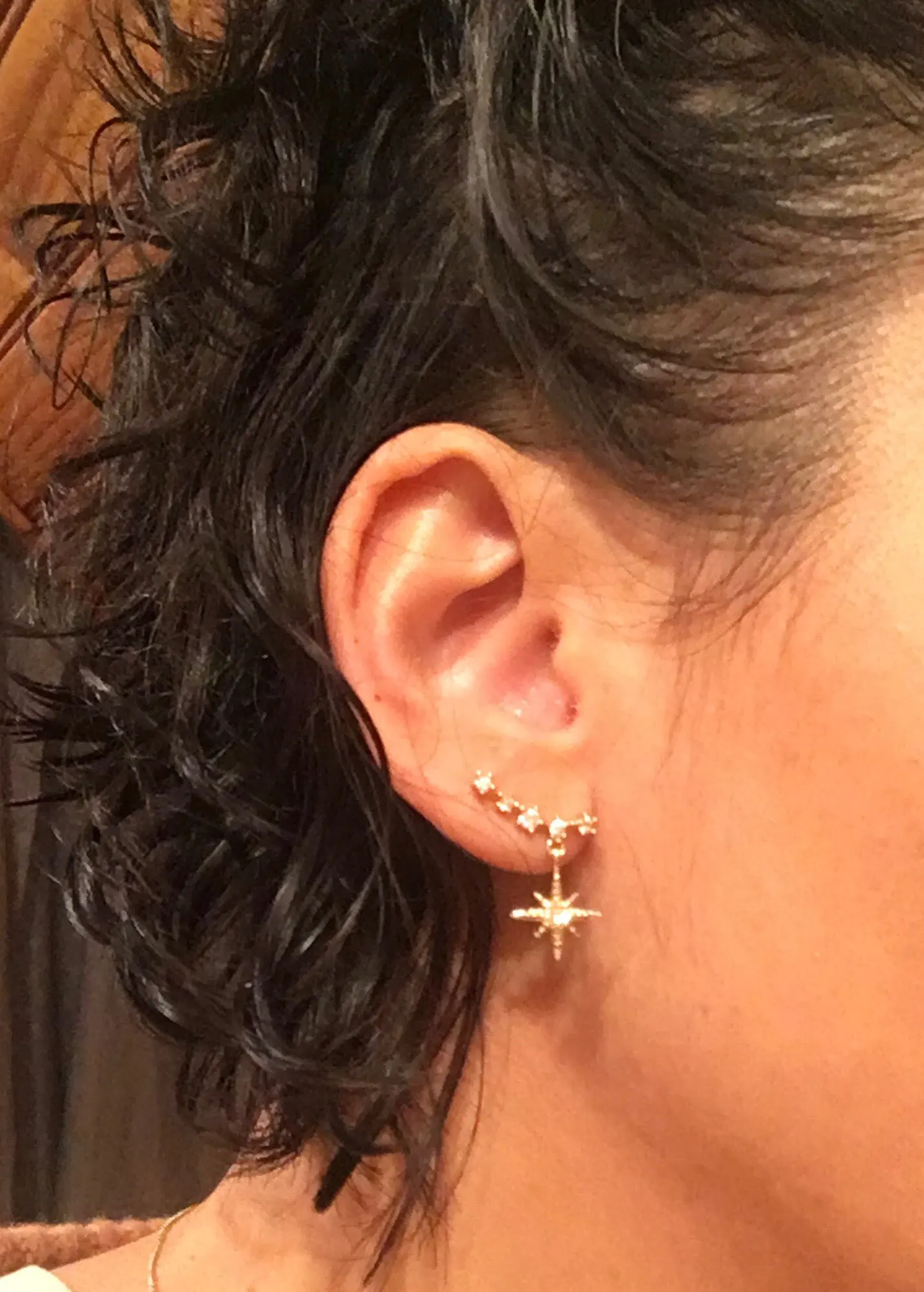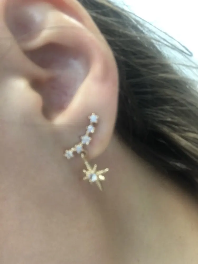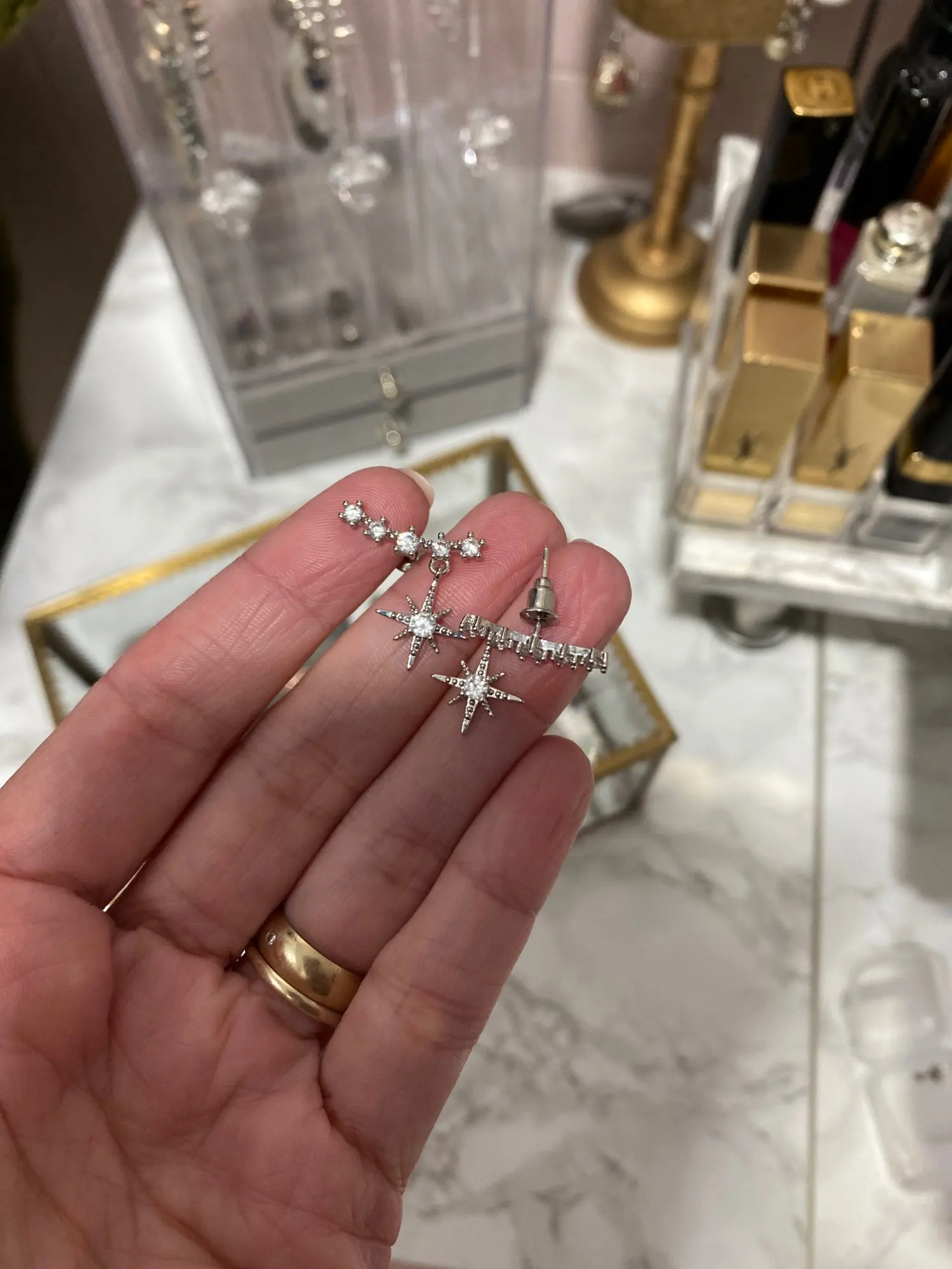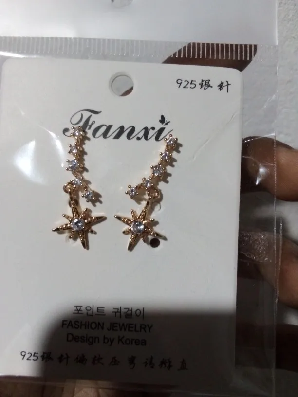 Conforme aux photos et descriptions. Les boucles d'oreilles m'ont été envoyées dans un simple sachet = elles ont été pliées durant (je présumes !) le voyage. Comme j'ai pu les redresser et que le vendeur m'a mis une attache de rechange je lui pardonne :) L'étoile est un peu lourde = la boucle d'oreille ne garde pas sa position. Dommage également que la boucle soit si longue, car elle dépasse de mon lobe. L'attache est au niveau du 3ème brillant. Dans mon cas, il aurait mieux valut qu'elle soit au 2ème, au niveau de l'étoile. Qualité / prix très correct.