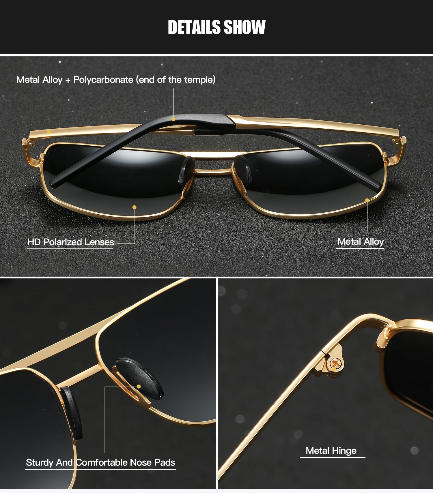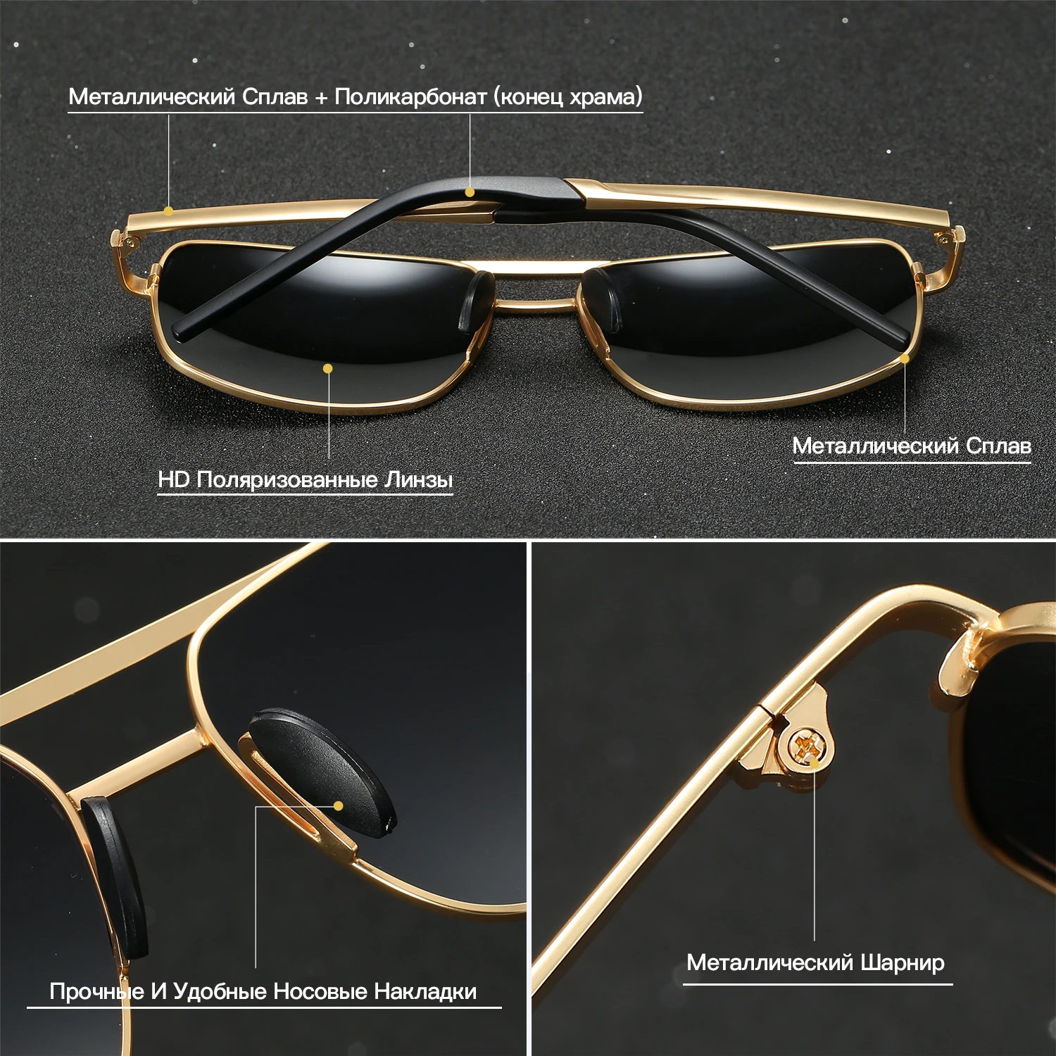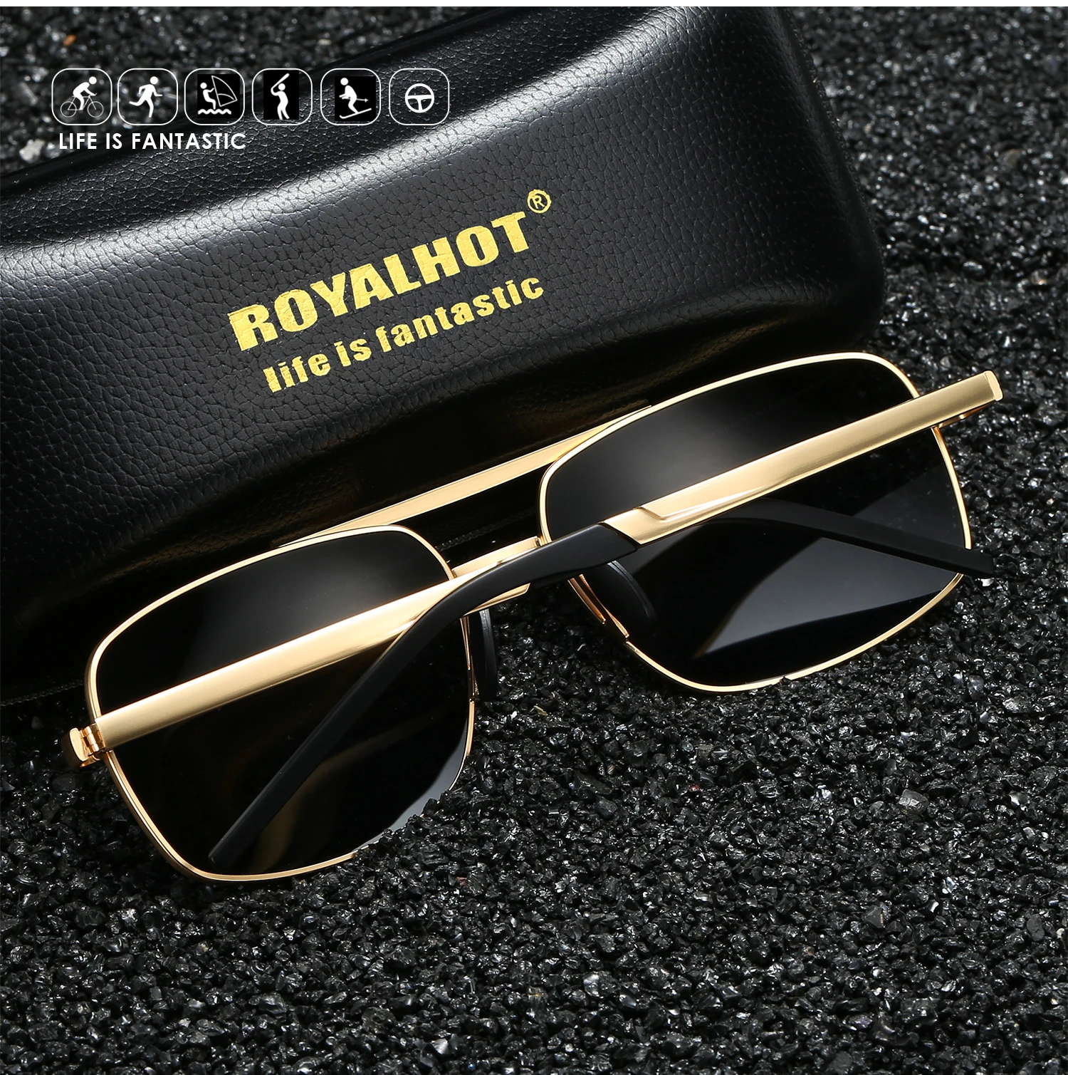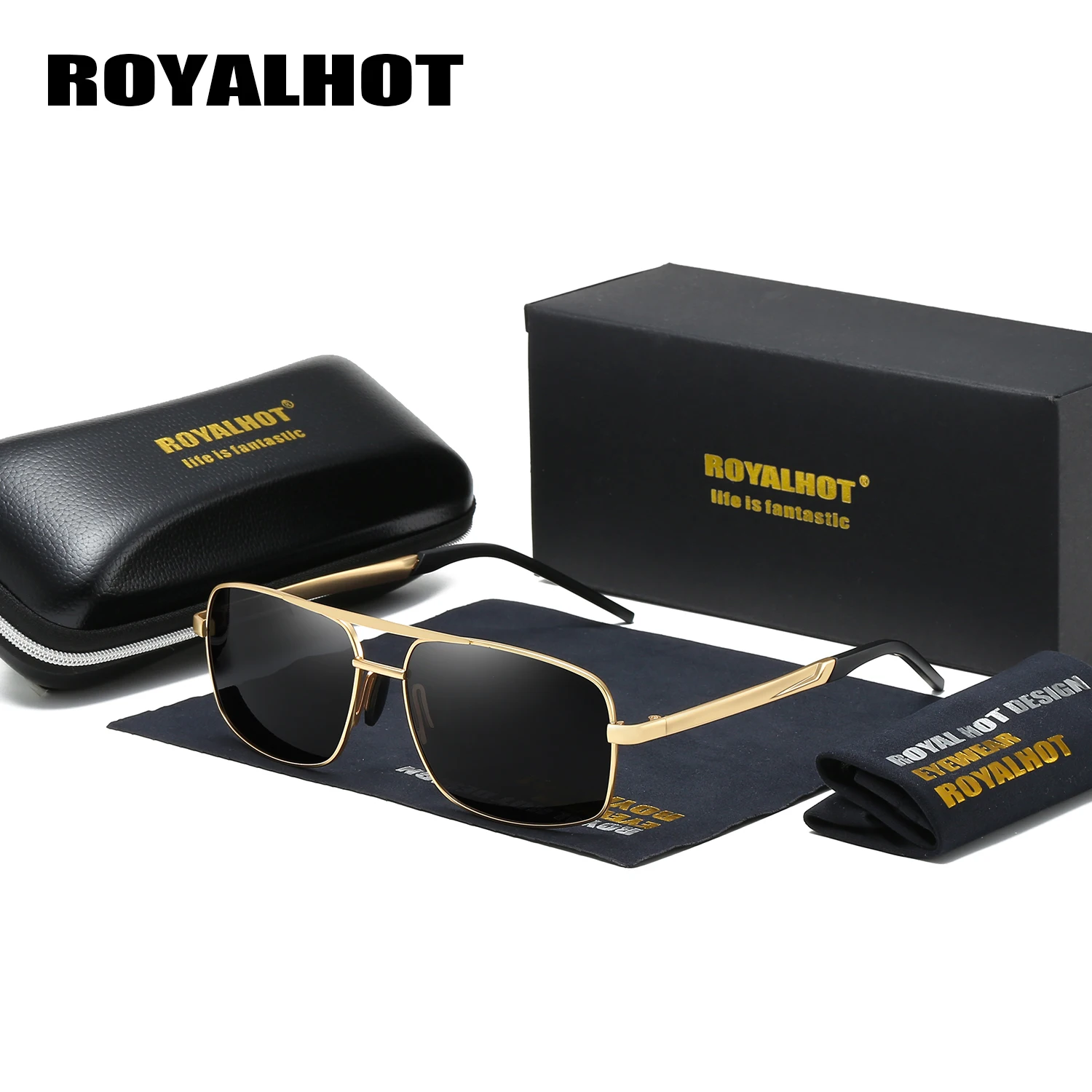 Солнцезащитные очки RoyalHot мужские и женские, поляризационные очки в оправе из сплава Rectang, удобные очки для вождения, темные очки для мужчин 900167