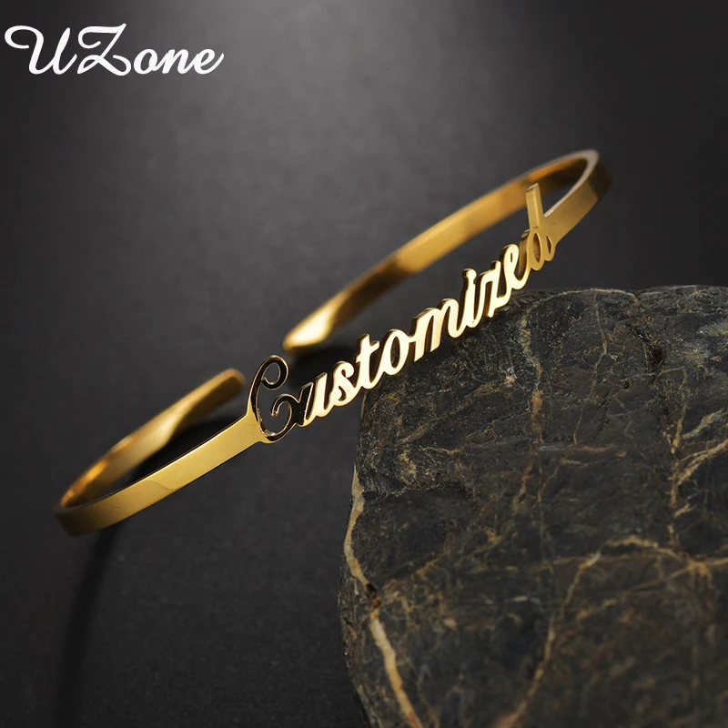 UZone 3 мм именные браслеты браслет персонализированный именной браслет из нержавеющей стали регулируемый именной Знак Детский Браслет Bijoux Femme