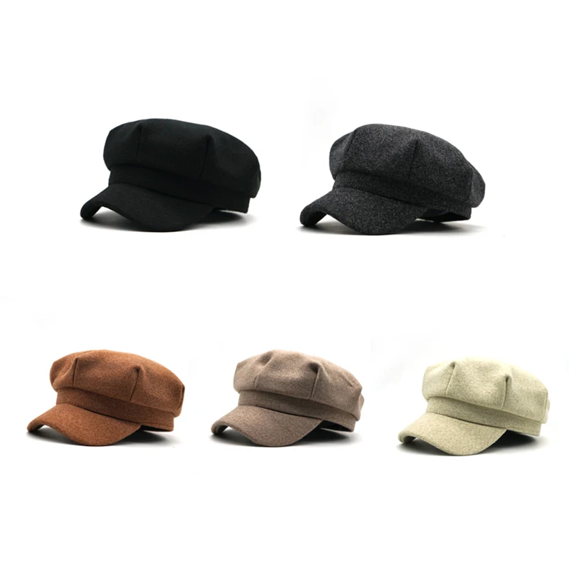 Новинка 2019, осенне-зимний женский берет, яркий однотонный восьмиугольный берет в стиле ретро, женские толстые теплые зимние шапки, Кепка с козырьком