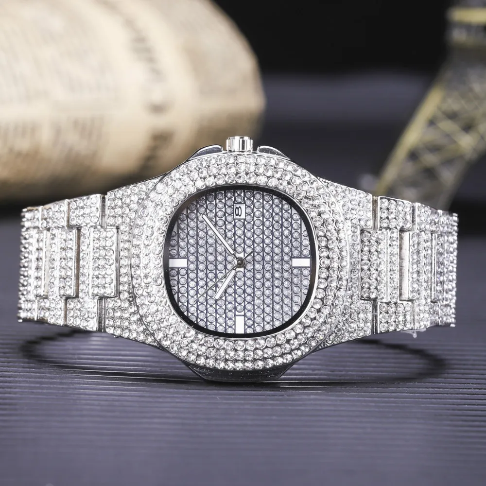 Роскошные мужские часы золотого и серебряного цвета в стиле хип-хоп...