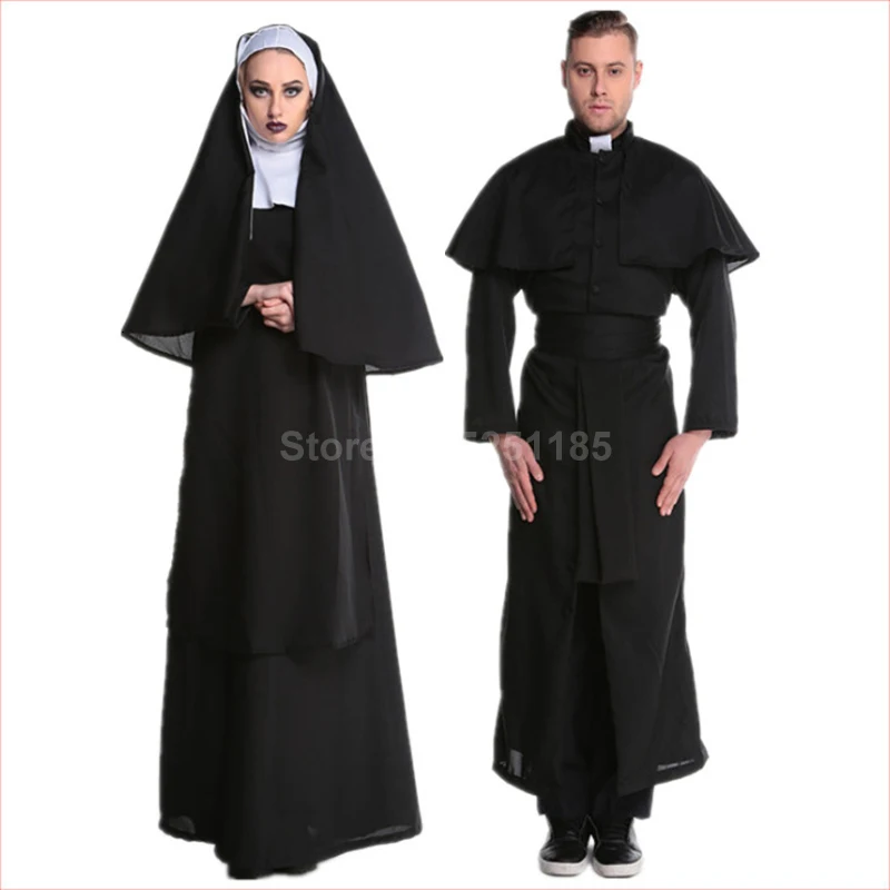 Средневековый Хэллоуин для мужчин женщин мужчин монах жрец монахиня халат мантия-пальто миссионерская Косплей дева Мария платье вечерние костюмы шарф головной убор