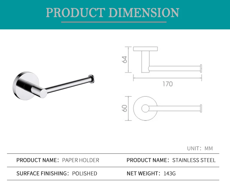 Особенности и характеристики:Рулонные бумажные Держатели/вешалка для салфеток/держатель для полотенецМатериал: Прочная нержавеющая сталь SUS 304Использование: ванная комната/душевая комната/туалет/кухня/туалетОтделка: высококачественное хромированное покрытиеТип: аксессуары для ванной комнатыУстановка: НастенныйВключая все монтажные фитинги