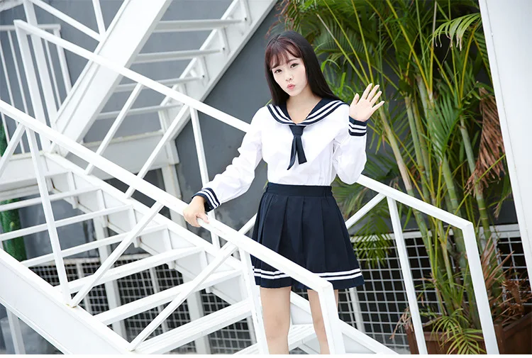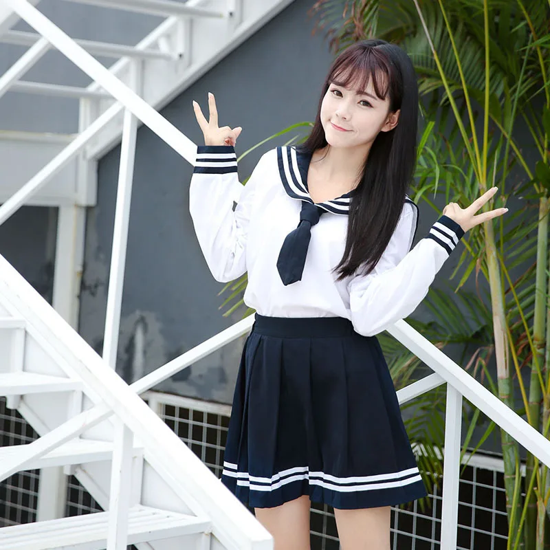 Высококачественная форма JK для девочек, японский и корейский Топы + юбка + галстук, школьная одежда, Униформа, Студенческая плиссированная юбка, матрос, черный, белый костюм, 3 шт.