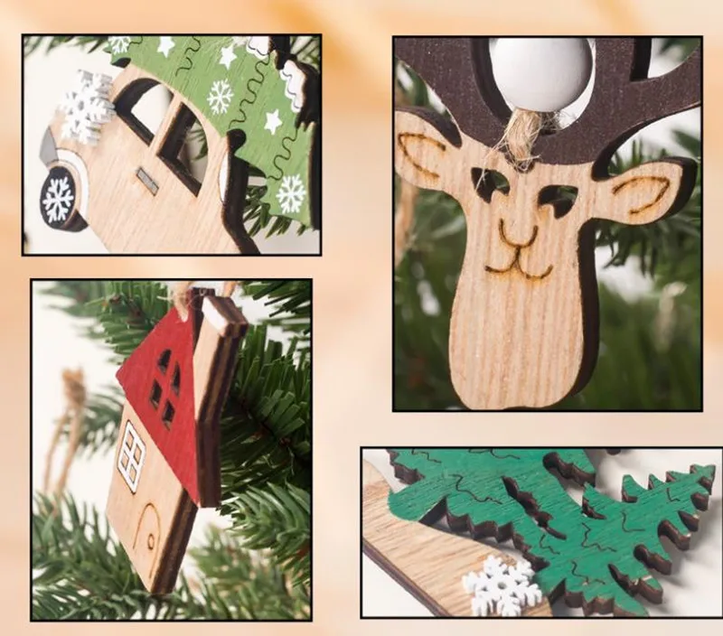 Деревянные Подвески для украшения новогодней елки, Подвесные Подарки