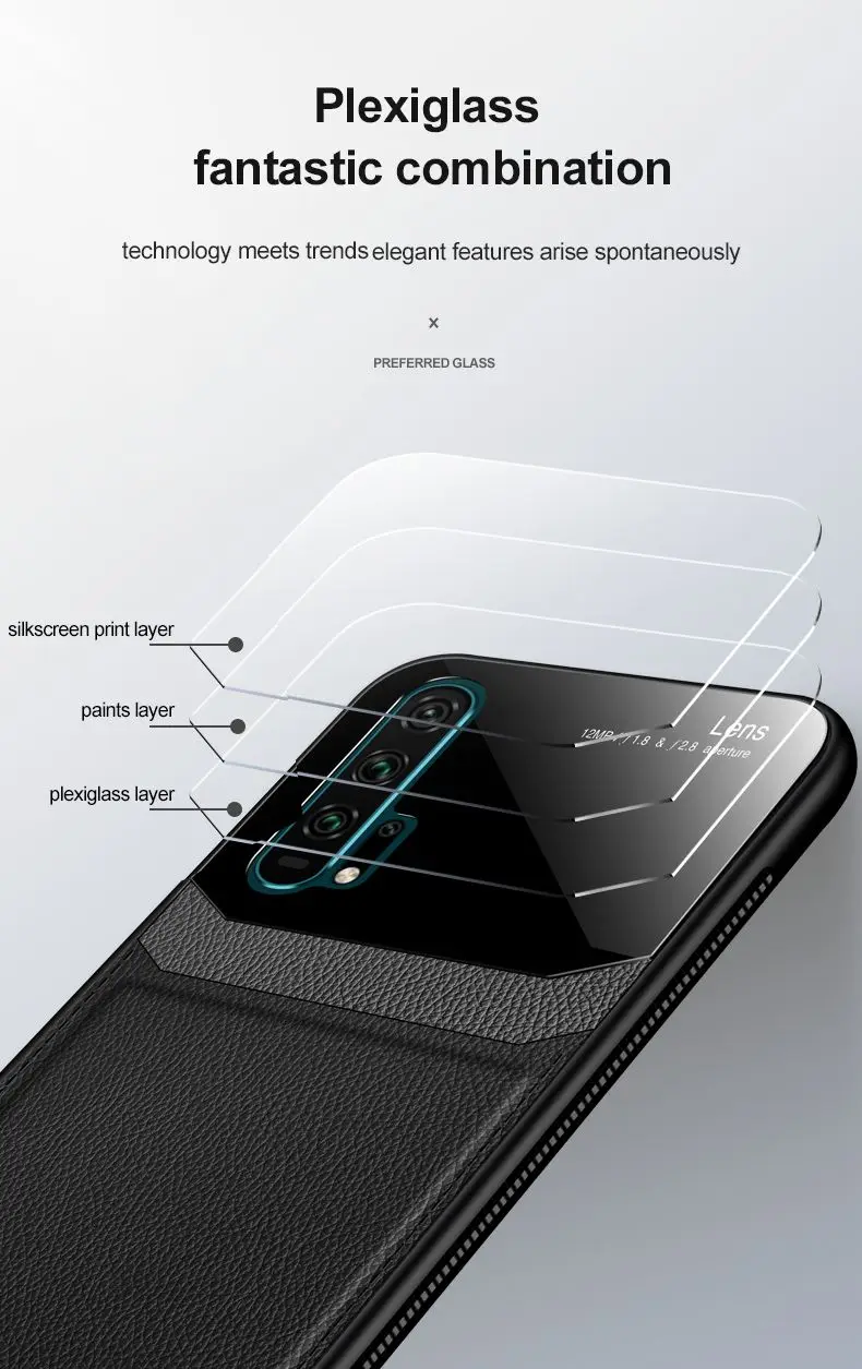 Кожаный чехол для Huawei Honor 20 Pro, силиконовый роскошный противоударный чехол для Honor 20 Lite, V20, V10, Note10, зеркальный акриловый чехол