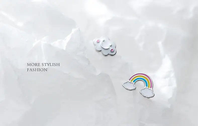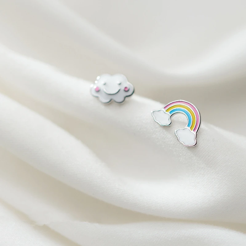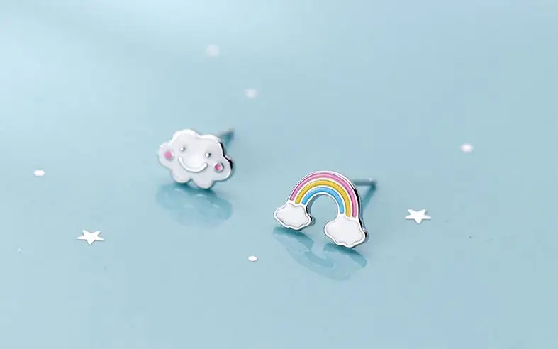 Женские асимметричные серьги-гвоздики из 100% настоящего серебра, с рисунком улыбки, облаков и радуги, милые ювелирные украшения для девочек и друзей