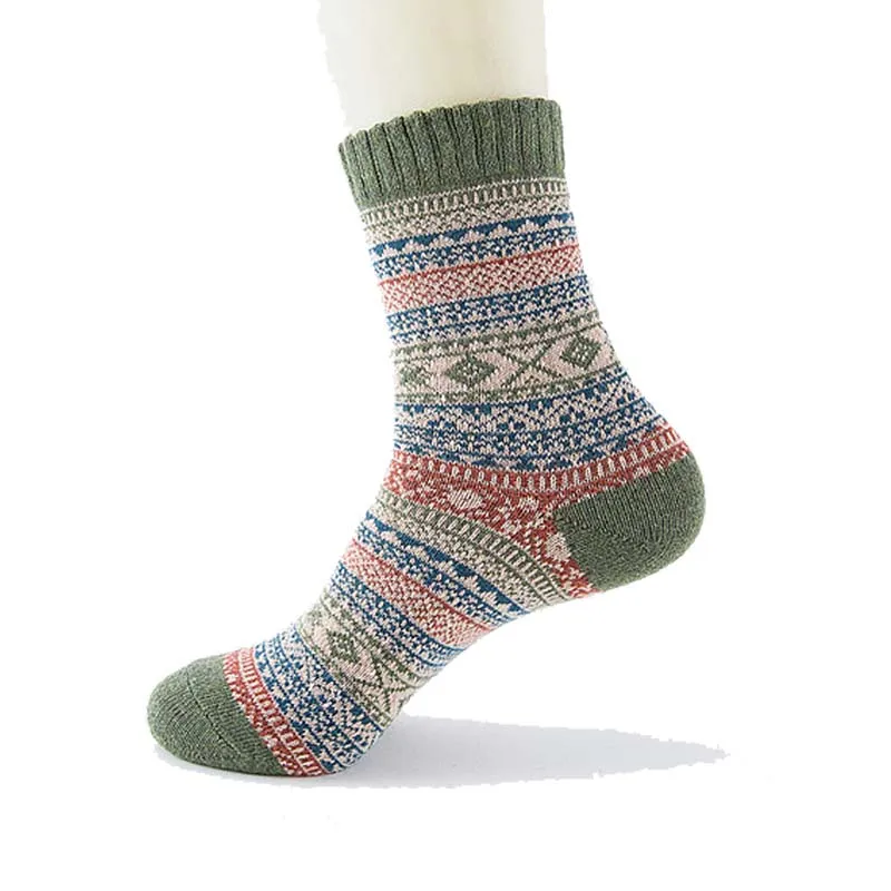 Мужские и женские винтажные полосатые тотемные зимние носки, носки из мериносовой шерсти для подростков, толстые теплые носки из кроличьей шерсти для мужчин