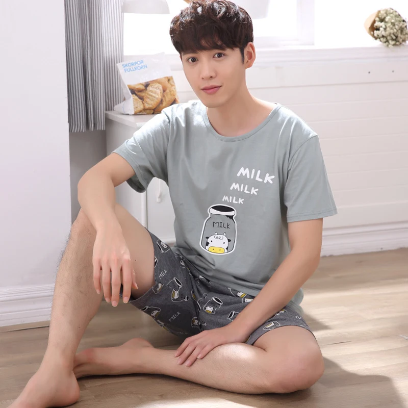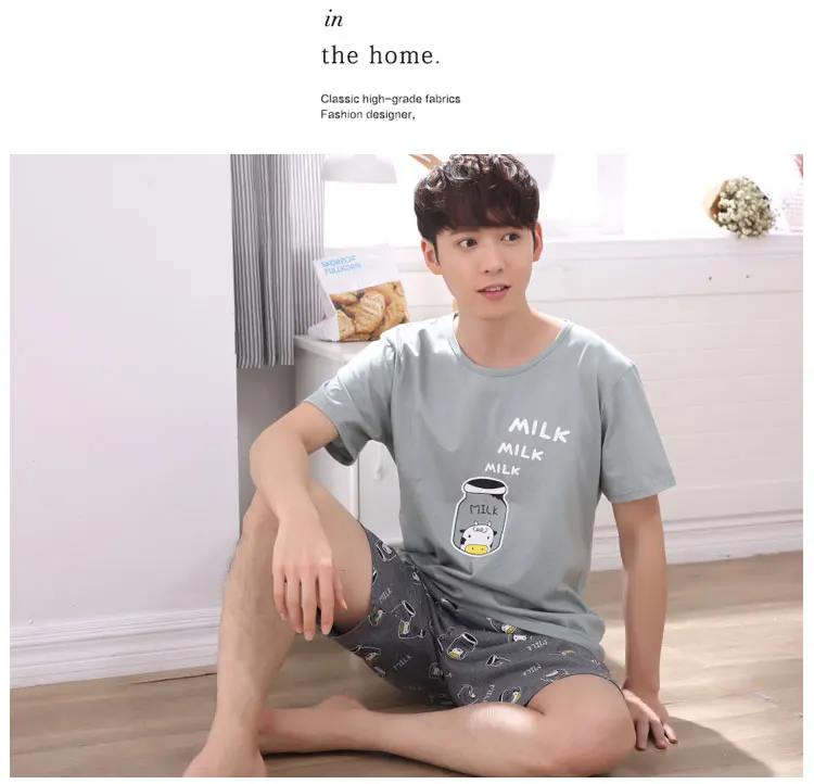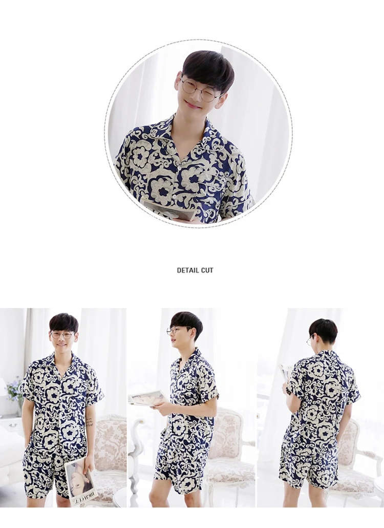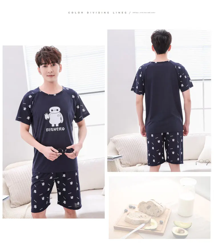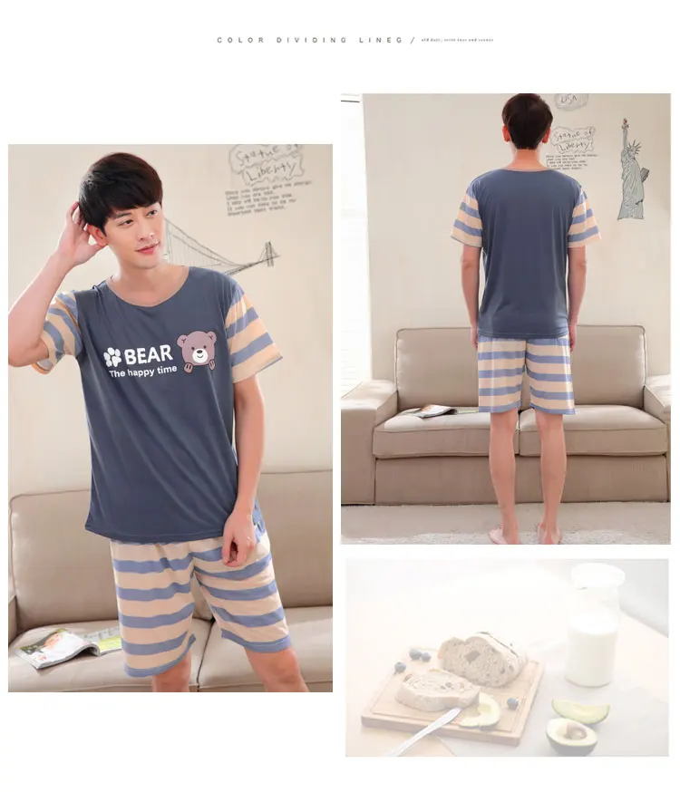 YAHOUHEI, Мужская пижама, летняя, короткий рукав, домашняя, тонкая, хлопок, клетчатая Пижама, для мужчин, для отдыха, пижамный комплект, для мальчиков, одежда для сна, наборы