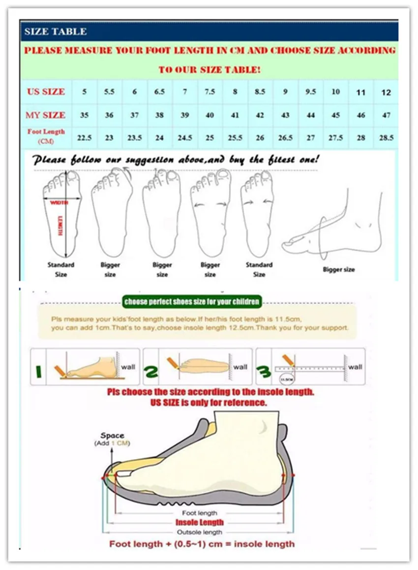 Ниже показано, как правильно выбрать размер обуви:Размеры обуви в нашей стране значительно отличаются от таблицы размеров обуви в вашей стране, но длина вашей ступни остается неизменной, поэтому рекомендуем измерить длину ступни линейкой и затем выбрать размер из таблицы ниже.Важное примечание:Длина стопы не является длиной стельки.Длина стопы не является длиной подошвы.Длина стопы <длина стельки <длина подошвыЕвропейский размер 35 = Китайский размер 225 = размер США 5 = длина стопы 22,5 смЕвропейский размер 36 = Китайский Размер 230 = Размер США 5,5 = длина стопы 23 смЕвропейский размер 37 = Китайский Размер 235 = Размер США 6 = длина стопы 23,5 смЕвропейский размер 38 = Китайский размер 240 = размер США 6,5 = длина стопы 24 смЕвропейский размер 39 = Китайский размер 245 = размер США 7 = длина стопы 24,5 смЕвропейский размер 40 = Китайский размер 250 = размер США 7,5 = длина стопы 25 смЕвропейский размер 41 = Китайский размер 255 = размер США 8 = длина стопы 25,5 смЕвропейский размер 42 = Китайский Размер 260 = Размер США 8,5 = длина стопы 26 смЕвропейский размер 43 = Китайский размер 265 = американский размер 9 = длина стопы 26,5 смЕвропейский размер 44 = Китайский размер 270 = Размер США 9,5 = длина стопы 27 смЕвропейский размер 45 = Китайский Размер 275 = американский размер 10 = длина стопы 27,5 смЕвропейский размер 46 = Китайский Размер 280 = американский размер 11 = длина стопы 28 смЕвропейский размер 47 = Китайский размер 285 = Размер США 12 = длина стопы 28,5 см