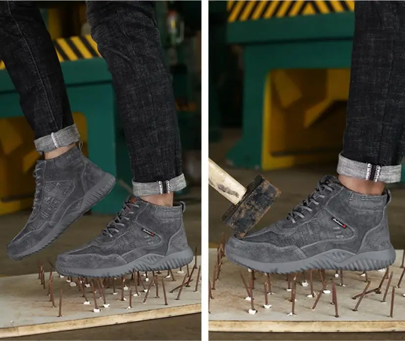 CS777 защитная Рабочая обувь со стальным носком для мужчин, 2021, Модные дышащие ботинки-мартинсы без шнуровки, с защитой от ударов и прокалывания, неубиваемые рабочие ботинки