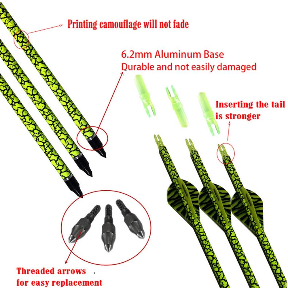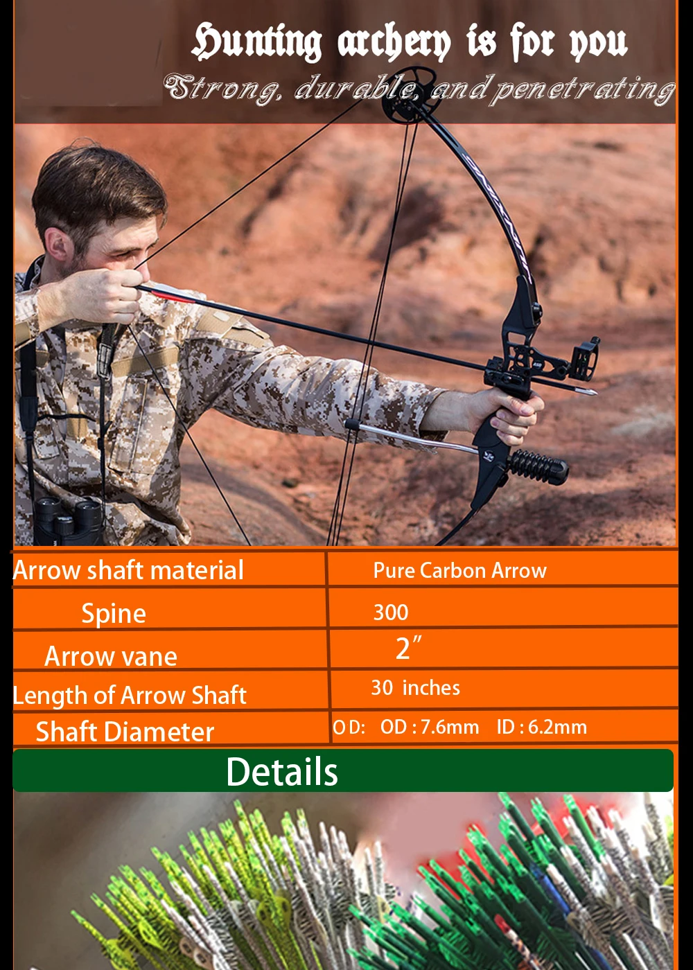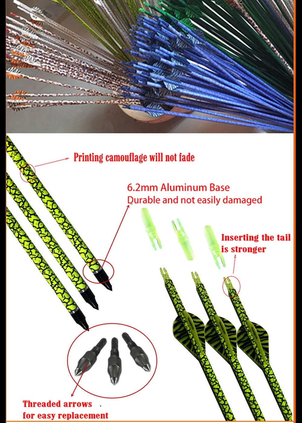 Стрелы для лука из лука 12 шт., стержни из 6,2 чистого карбона, 300 мм 30 дюймов, для стрельбы из рекурсивного блочного Лука
