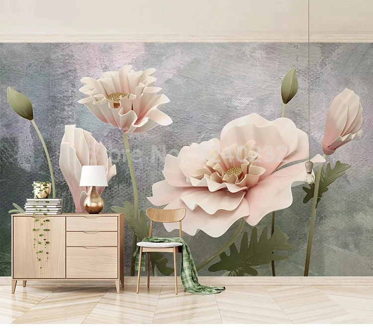 Фотообои на заказ, 3D стереоскопический холст, цветы, картина маслом, современная спальня, гостиная, ТВ, фон, настенная живопись