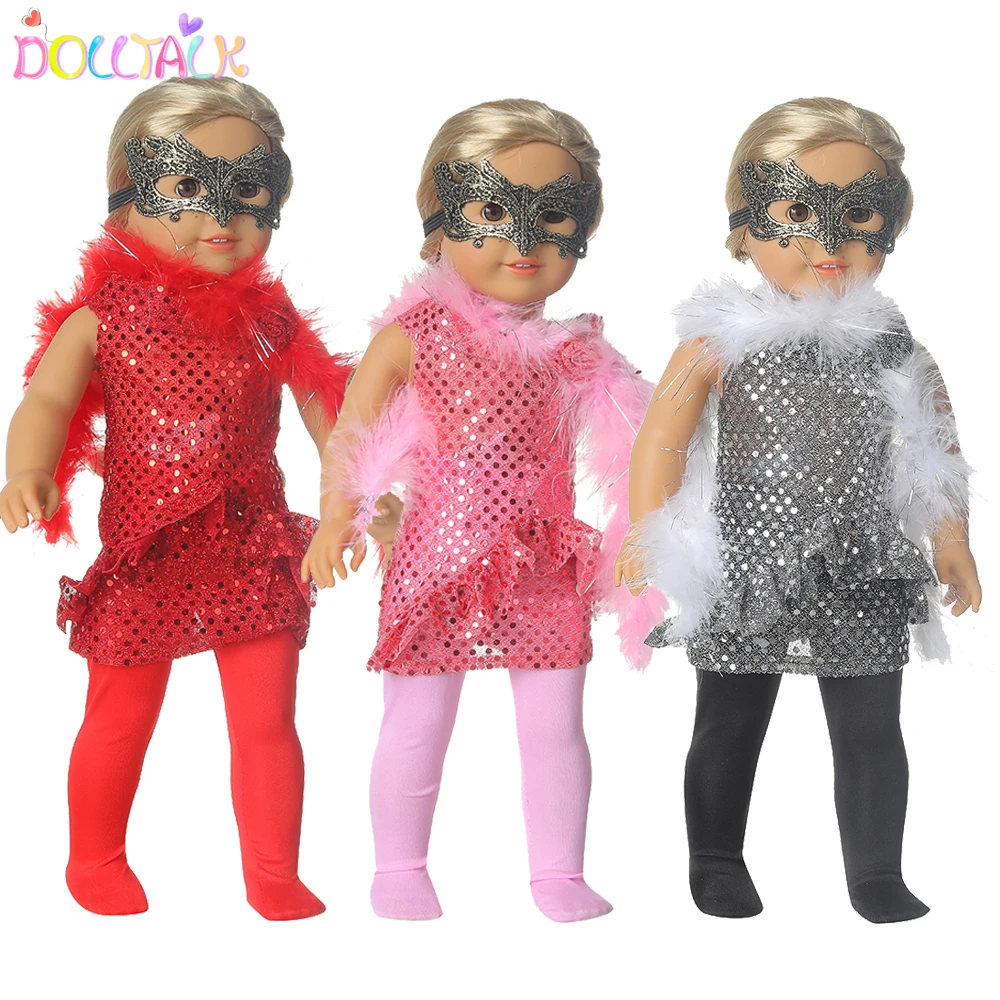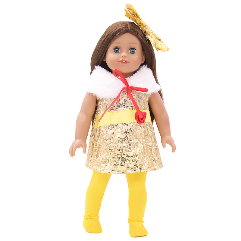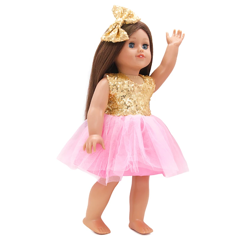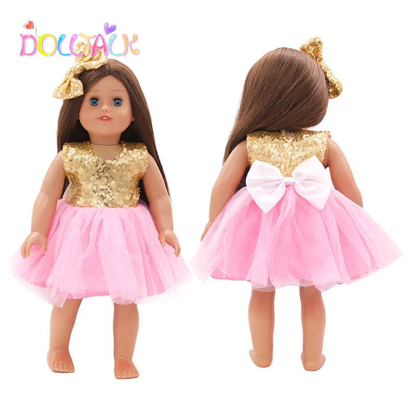 Блестящее платье с блестками и кукольная юбка одежда, Размеры: 18 дюймов американский Кружевное платье в кукольном стиле с аксессуары для волос 43 см для ухода за ребенком для мам, новая детская Diy куклы на маленькую девочку с поясом