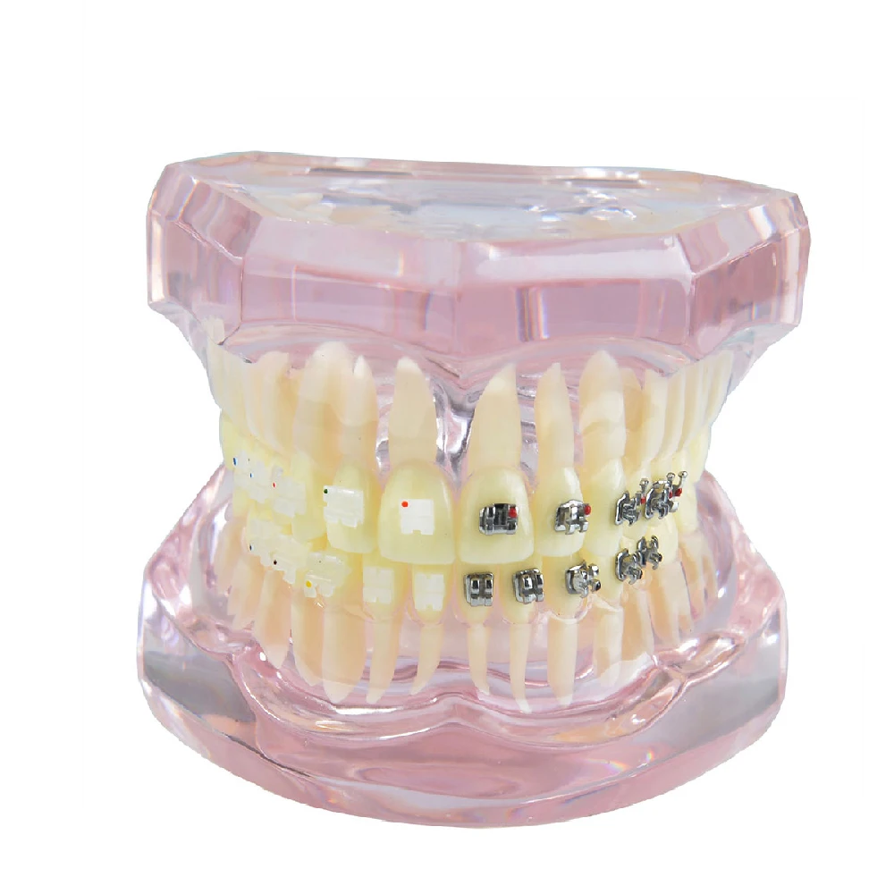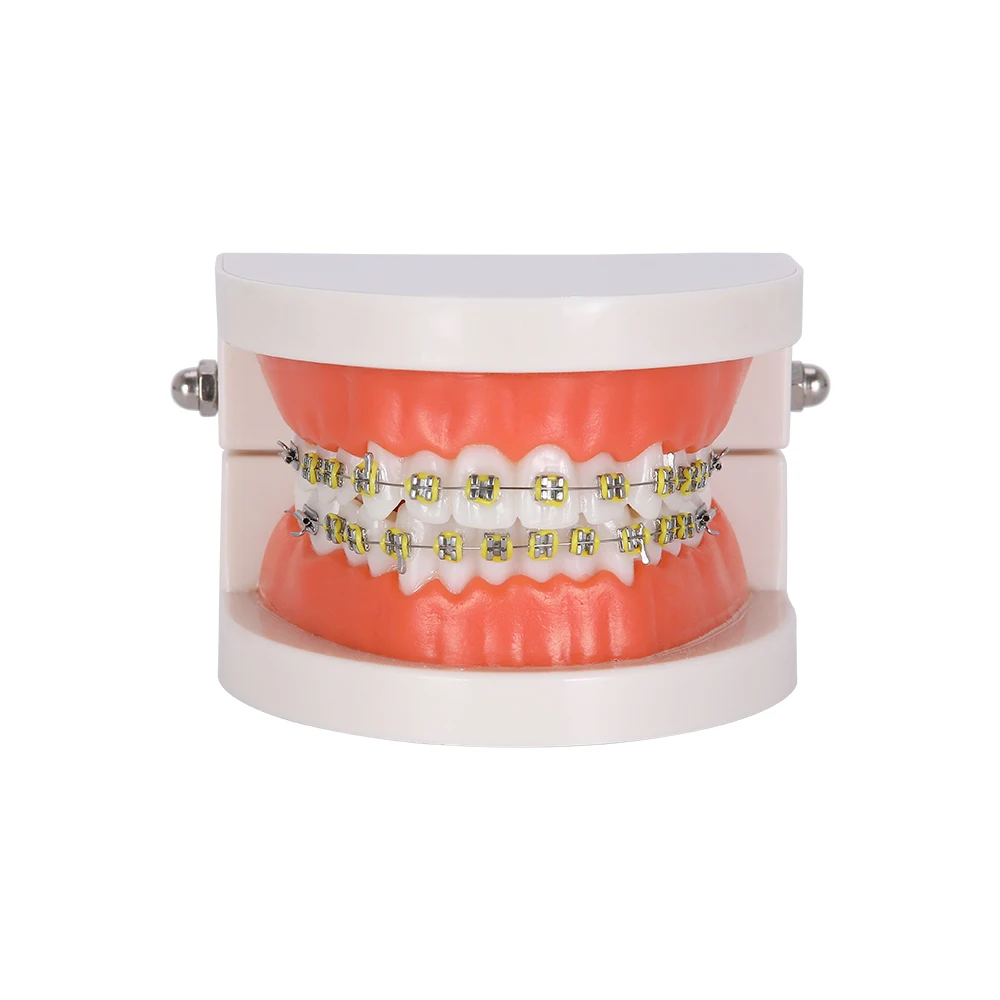Стоматологическая стандартная Ортодонтическая модель зубов с кронштейнами, букальными трубками и лигатурной проволокой Ортодонтическая обработка