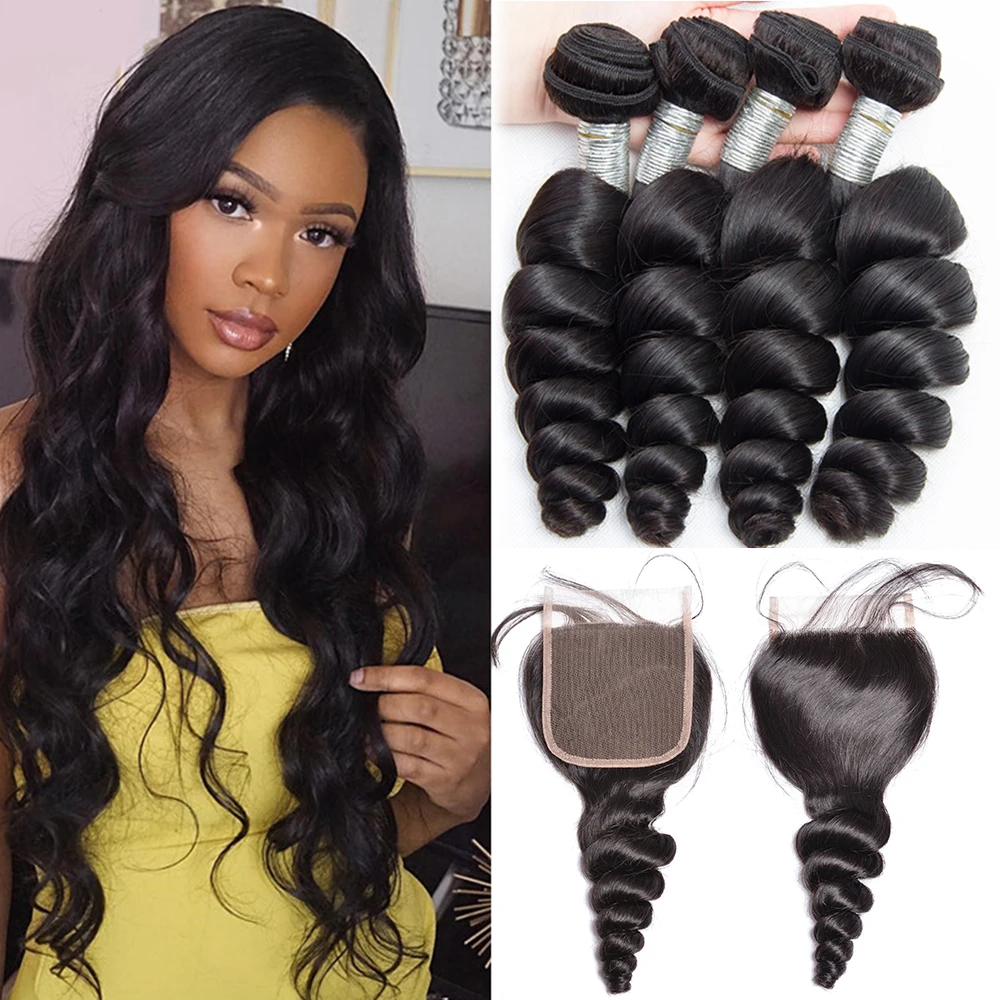 Свободные волнистые пучки с застежкой Maxine, свободные глубокие волнистые человеческие волосы, пучки с застежкой, перуанские волосы 3 4 пряди с застежкой