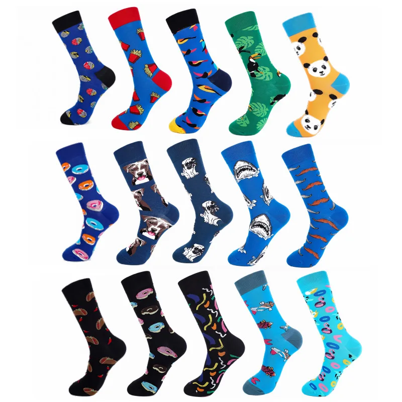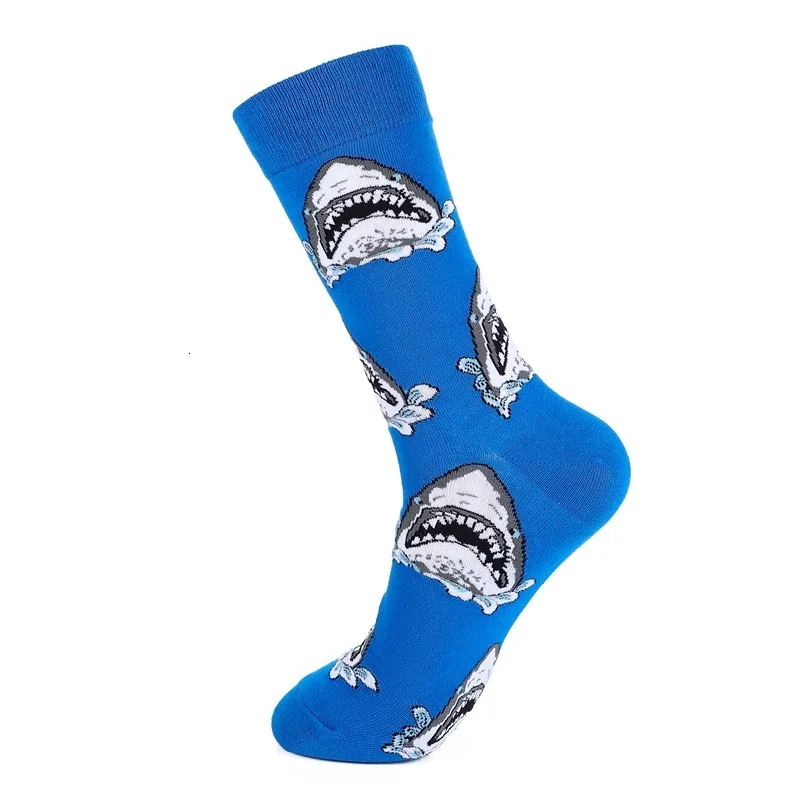 Модные мужские носки в стиле хип-хоп из чесаного хлопка, тренд Харадзюку, Мультяшные животные, собака, Акула, скейтборд, Веселые носки, 2020