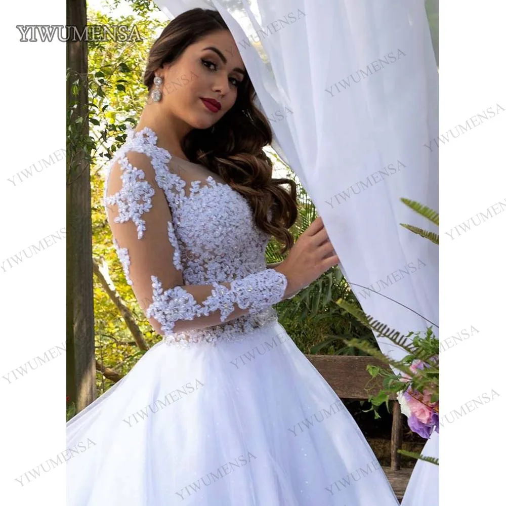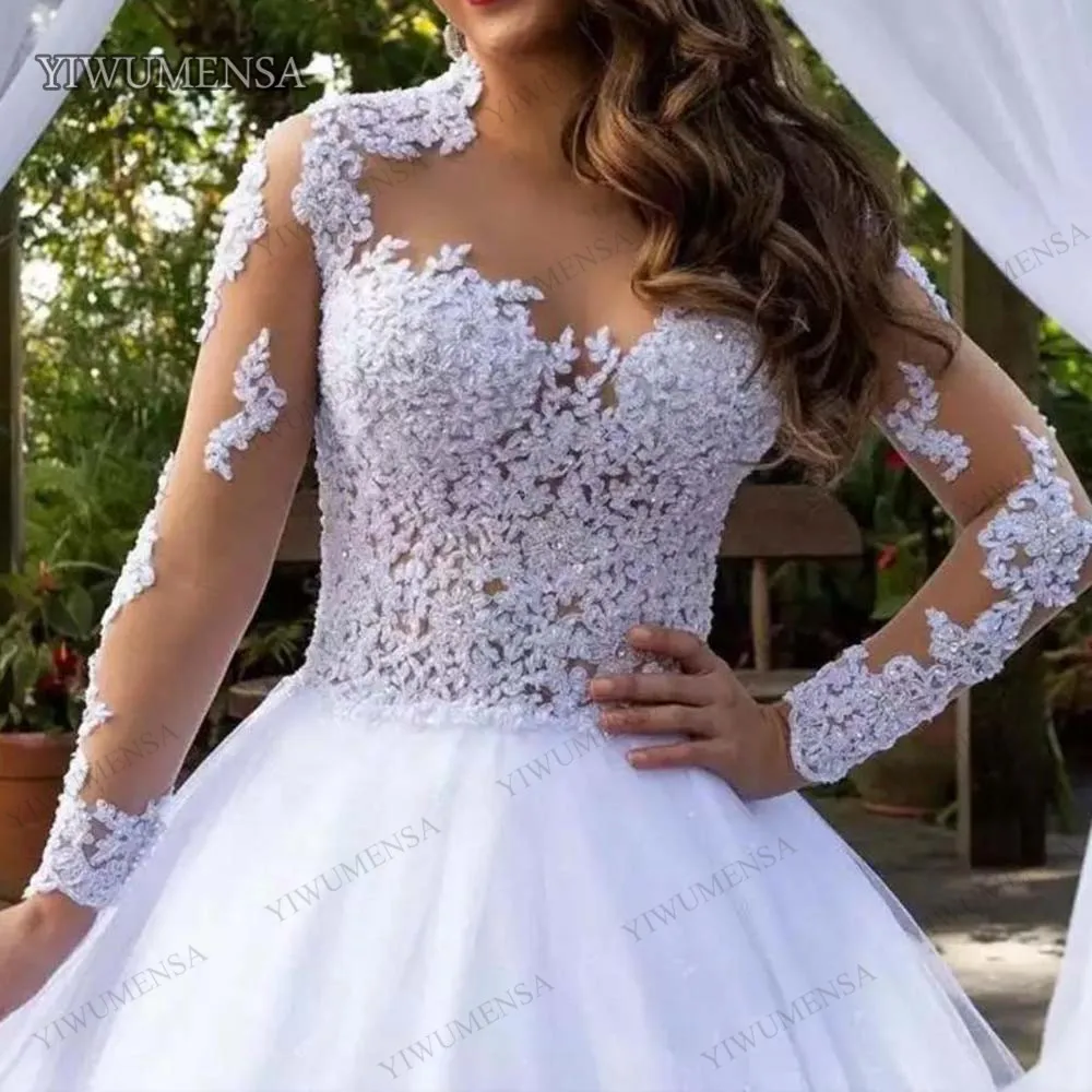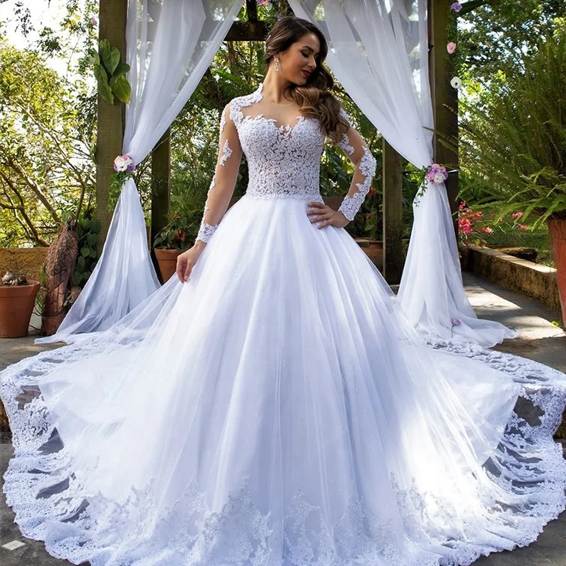 Соблазнительное бальное платье принцессы, свадебные платья с иллюзией, богемное кружевное Тюлевое платье с длинными рукавами и аппликацией, свадебное платье
