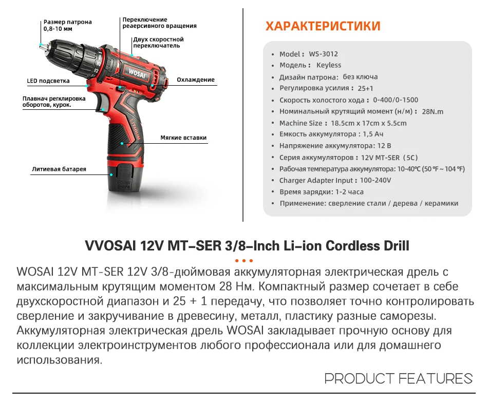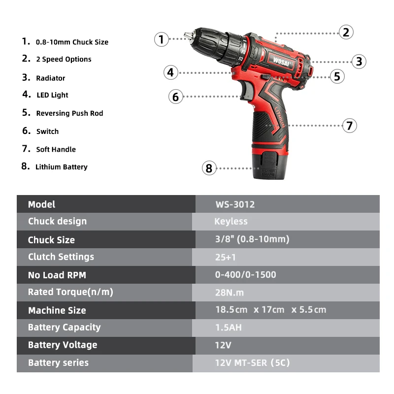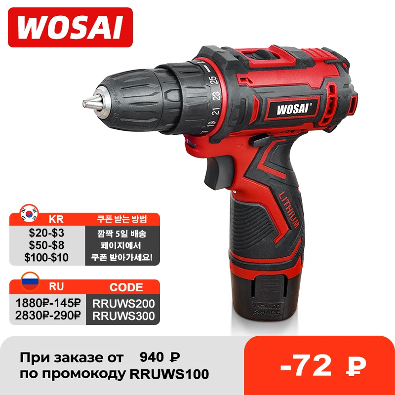 WOSAI 12В Макс электрическая отвертка беспроводная дрель мини беспроводной драйвер питания DC литий-ионный аккумулятор 38 дюйма 2-скоростной