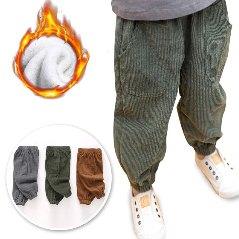 Детские вельветовые штаны, теплые, зимние, с начесом, в Корейском стиле, детский фонарь