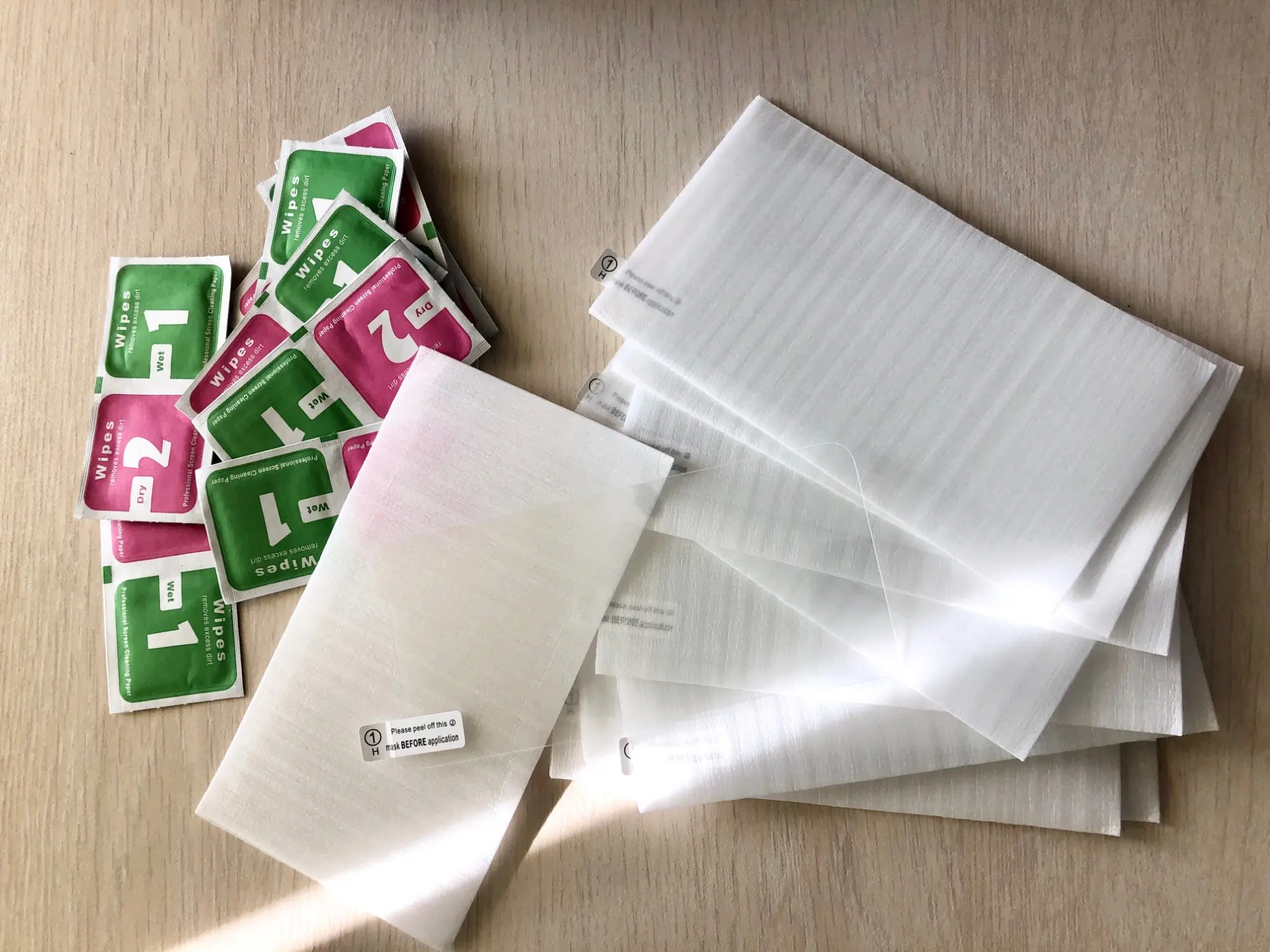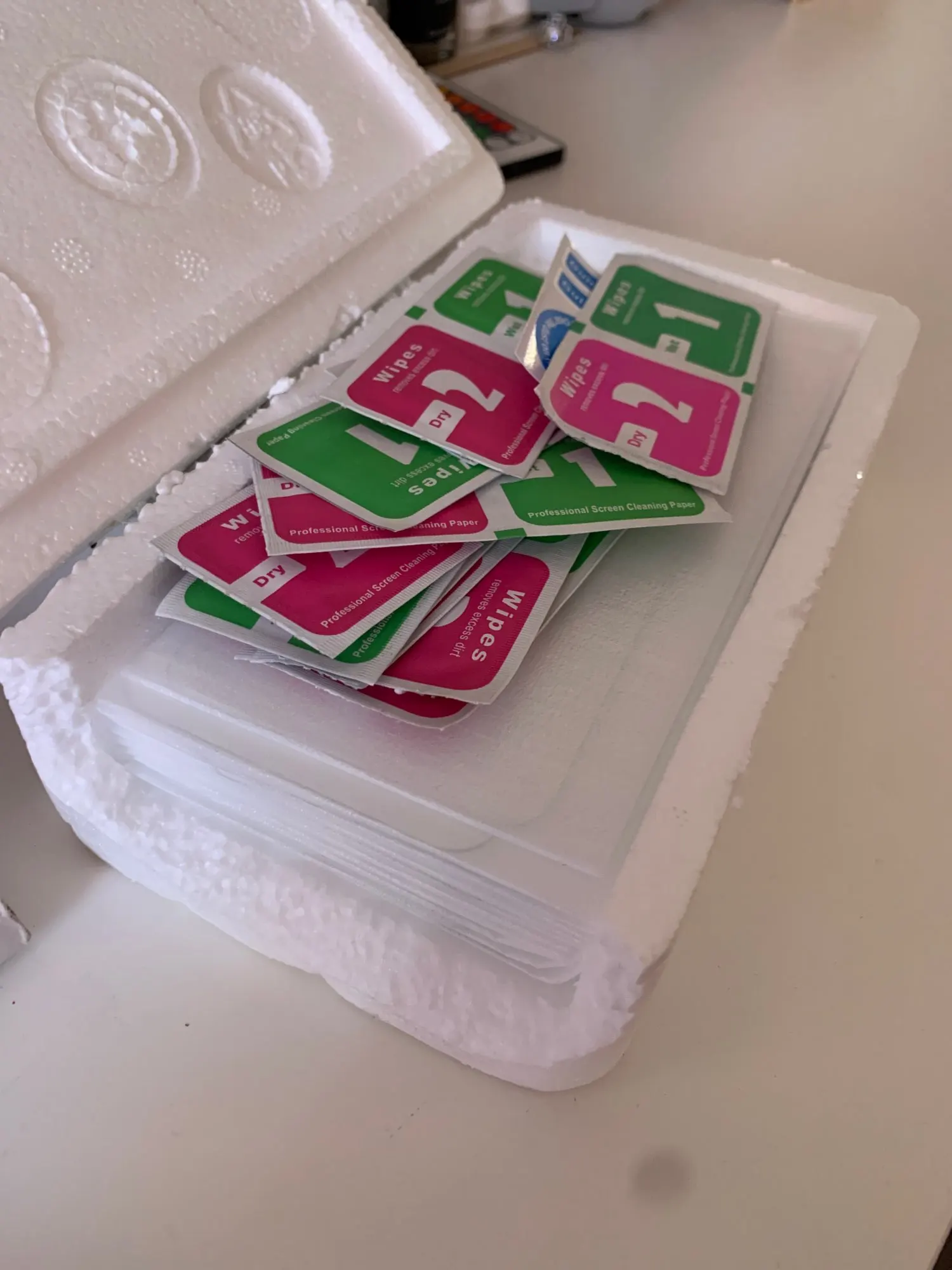 Они были чистыми и хорошо защищены. Хорошо сидят на телефоне, а также поставляются с салфетками, чтобы вы могли очистить его и получить от него всю пыль и грязь. Очень полезно и хорошего качества.