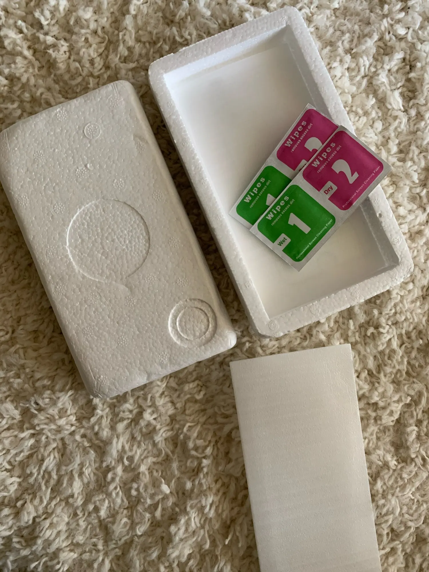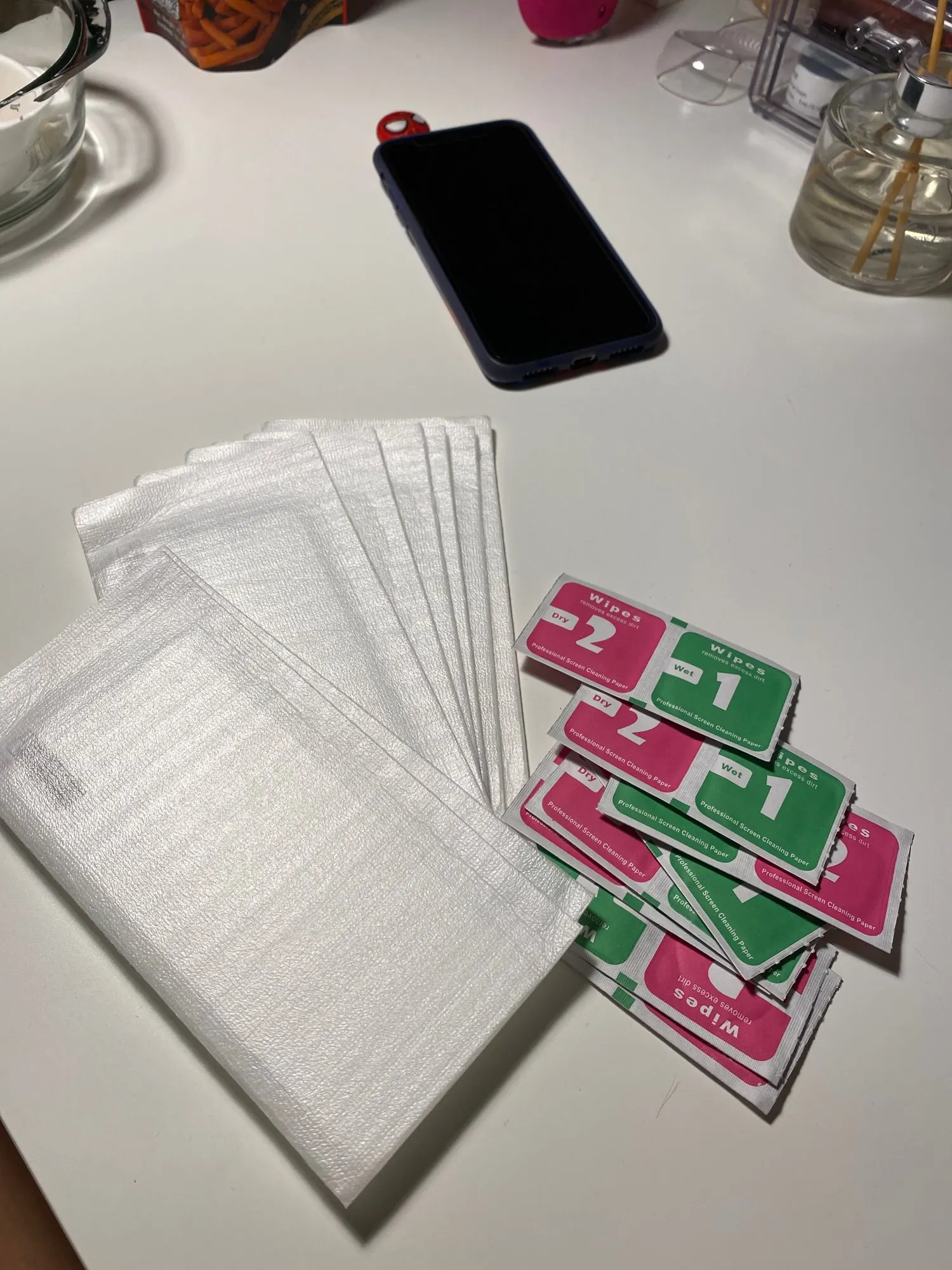 К сожалению, в комплект не входят наклейки-руководство, но в комплект входят обычные салфетки, так что это хорошо!