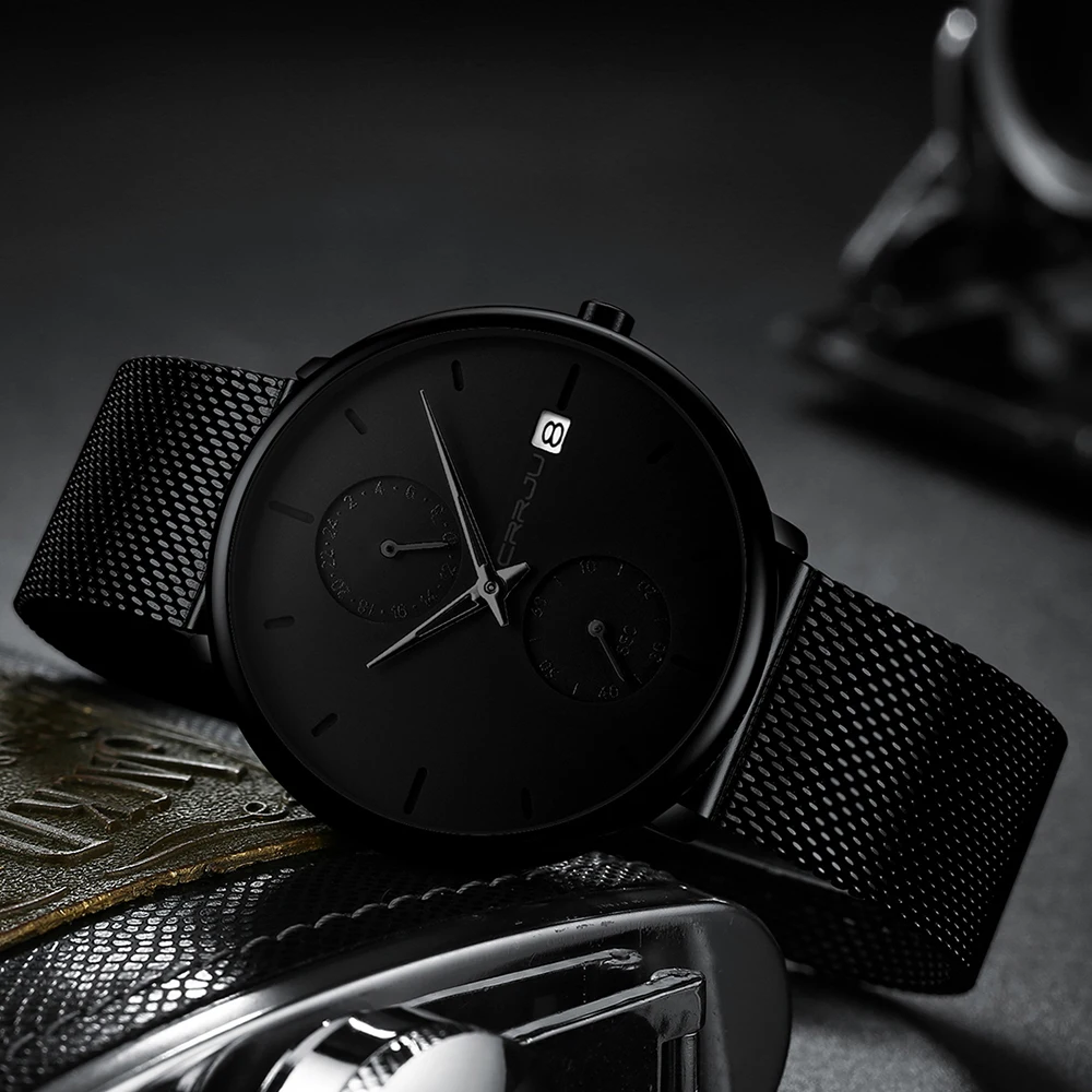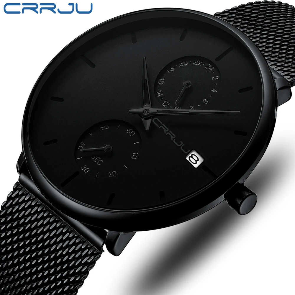 Часы CRRJU мужские, минималистичные, ультратонкие, водонепроницаемы...