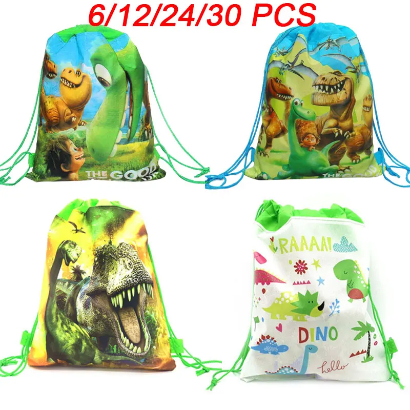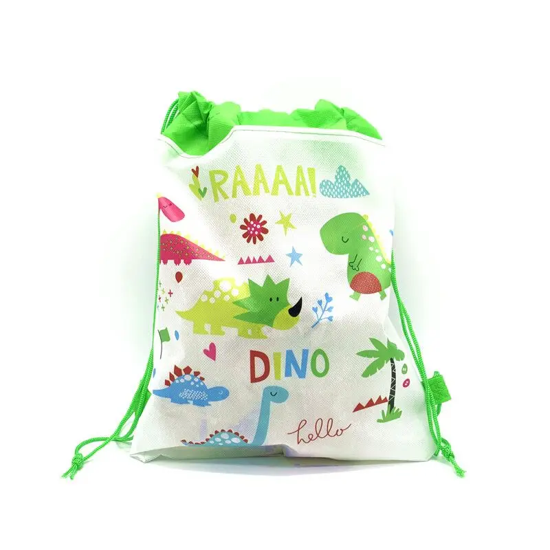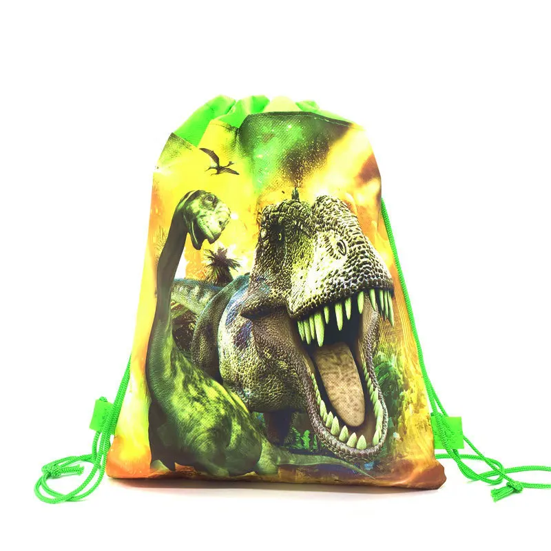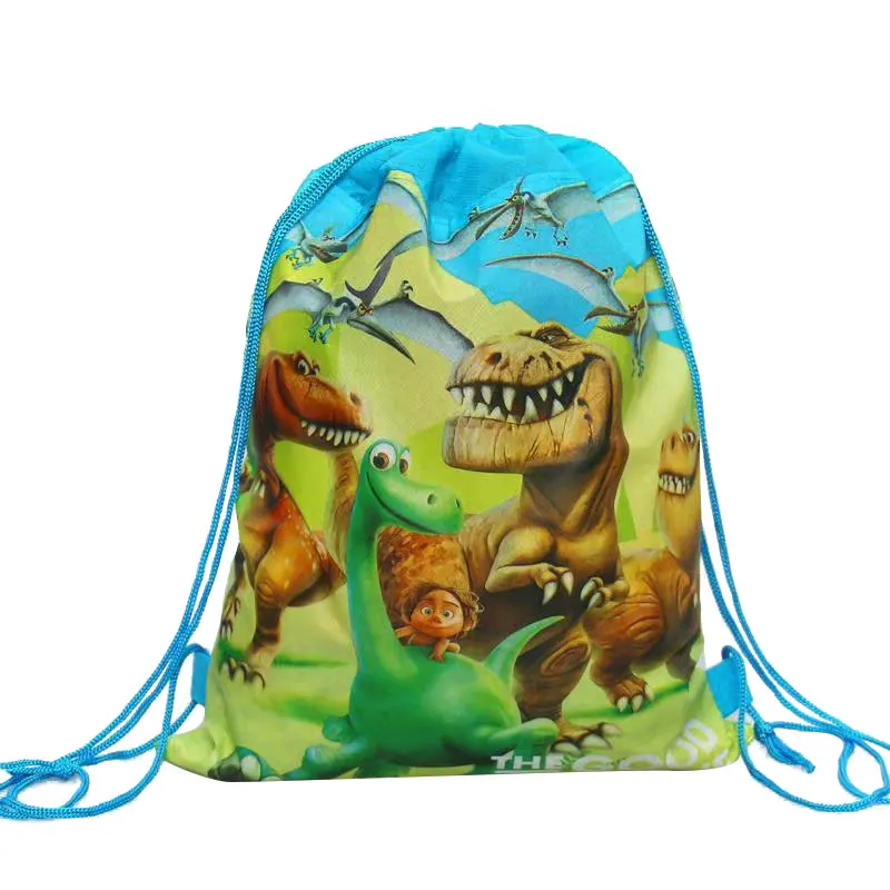 Вечерние сумки с мультипликационным динозавром для детей, рюкзак на шнурке для дня рождения, детская школьная сумка из нетканого материала, сумка-Органайзер, сумка для стирки