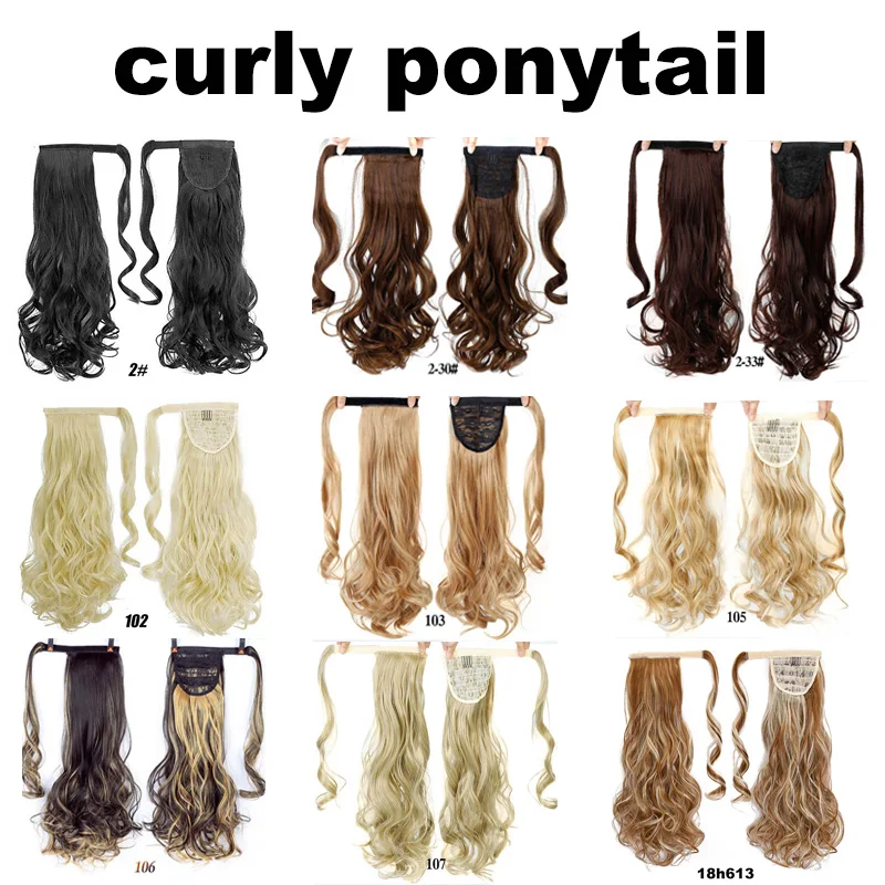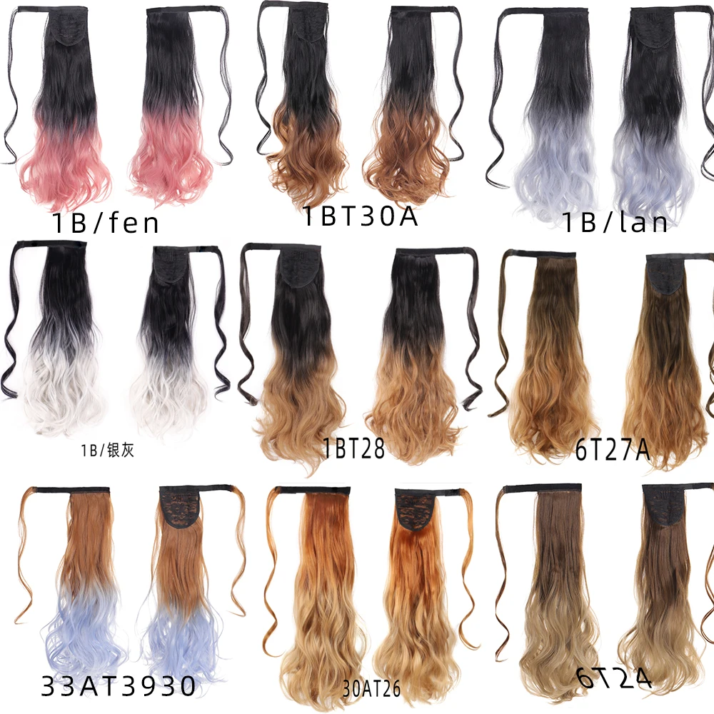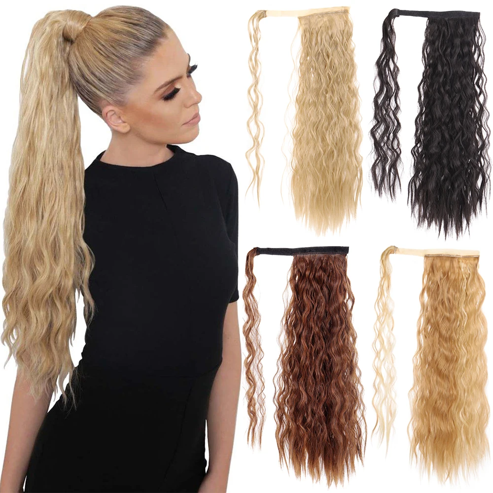 Allaosify 24 дюйма Синтетические длинные, Кудрявые, волнистые хвосты, прическа "хвост", волосы для наращивания на заколках Обёрточная бумага вокруг несколько Цвет прическа "хвост"
