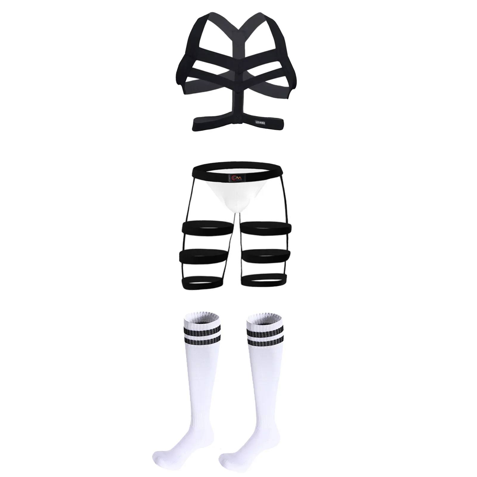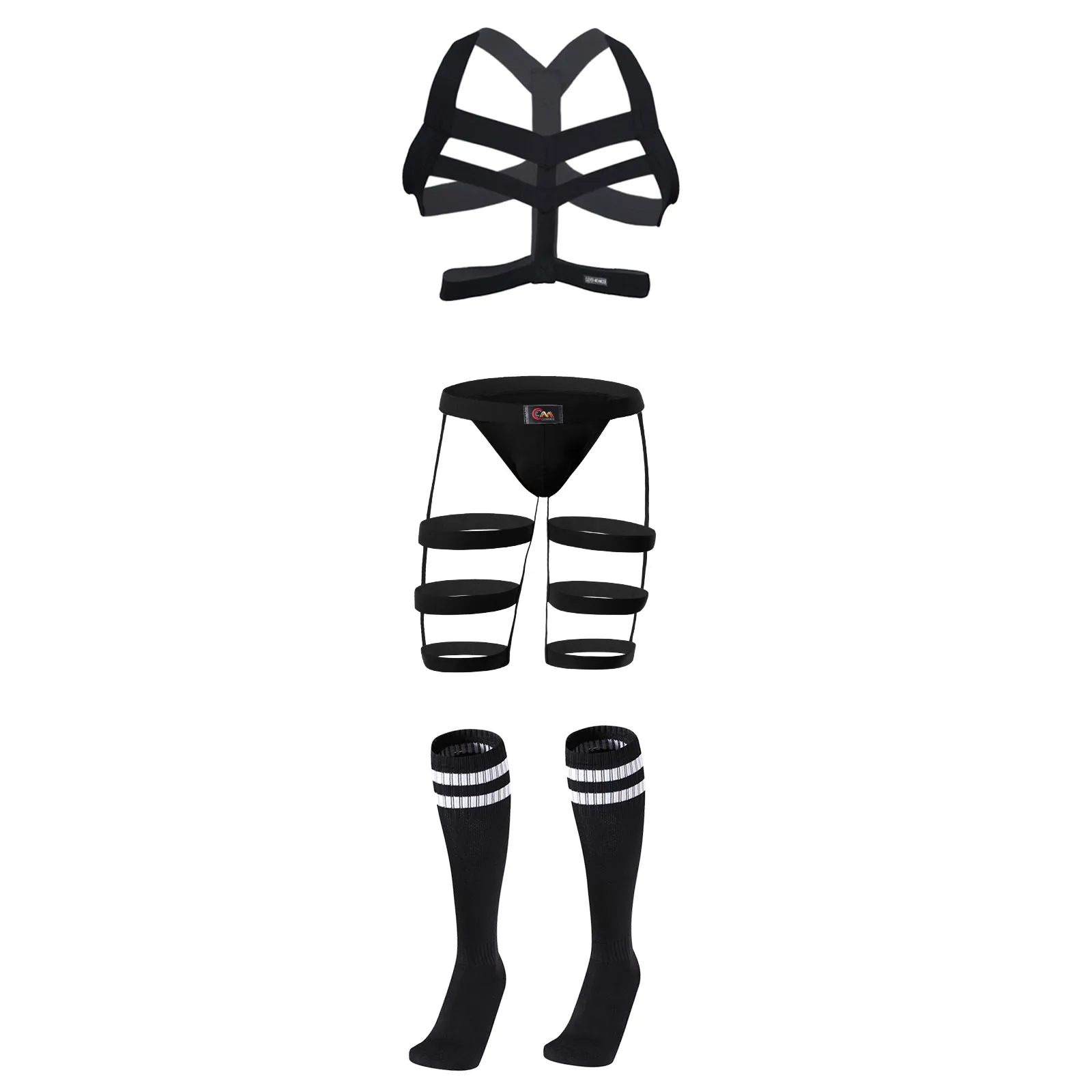 Комплект нижнего белья для мужчин, эластичная портупея, лямка через шею, нагрудный ремень, бандаж, трусики с поясом для чулок бедер, ночное белье для клуба, для выступлений