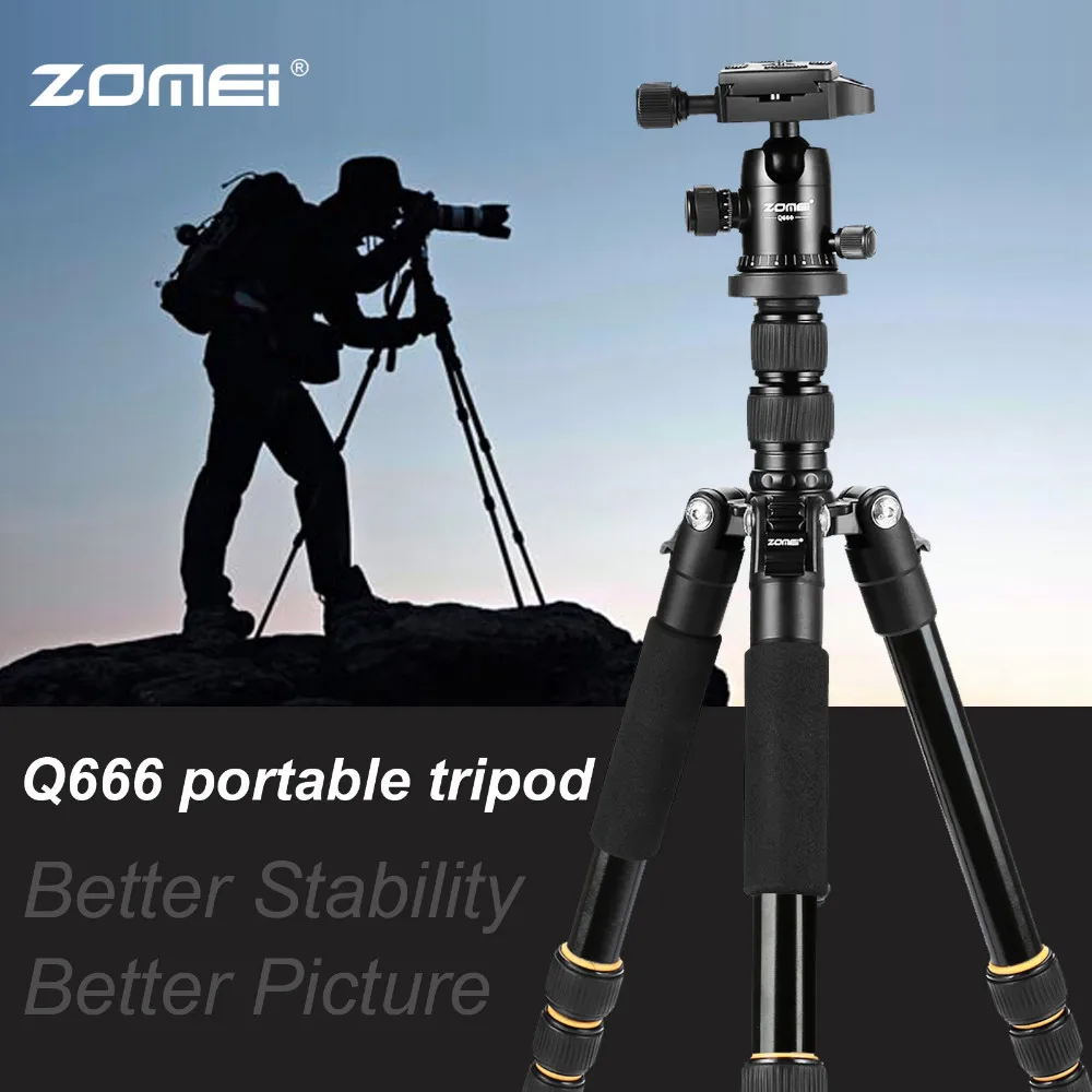Легкий портативный штатив ZOMEI Q666 для камеры, профессиональный дорожный трипод, монопод с шаровой алюминиевой головкой, компактный штатив для цифровых зеркальных камер