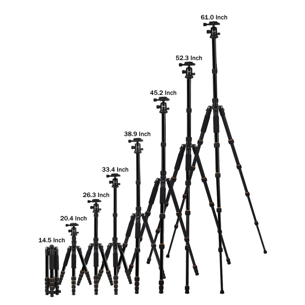 4: точно подобранная шаровая Головка на этих полных штативах: Универсальная шариковая головка с защищенным зажимом, двойная защита камеры от падения аварии. Усиленная шаровая Головка двойного действия с совместимой быстроразъемной пластиной. Интегральный уровень пузырьков: позволяет регулировать неровные сковородки и движения головы. Ножки штатива можно перевернуть и сложить на 180 градусов, что делает их достаточно маленькими, чтобы носить с собой куда угодно.