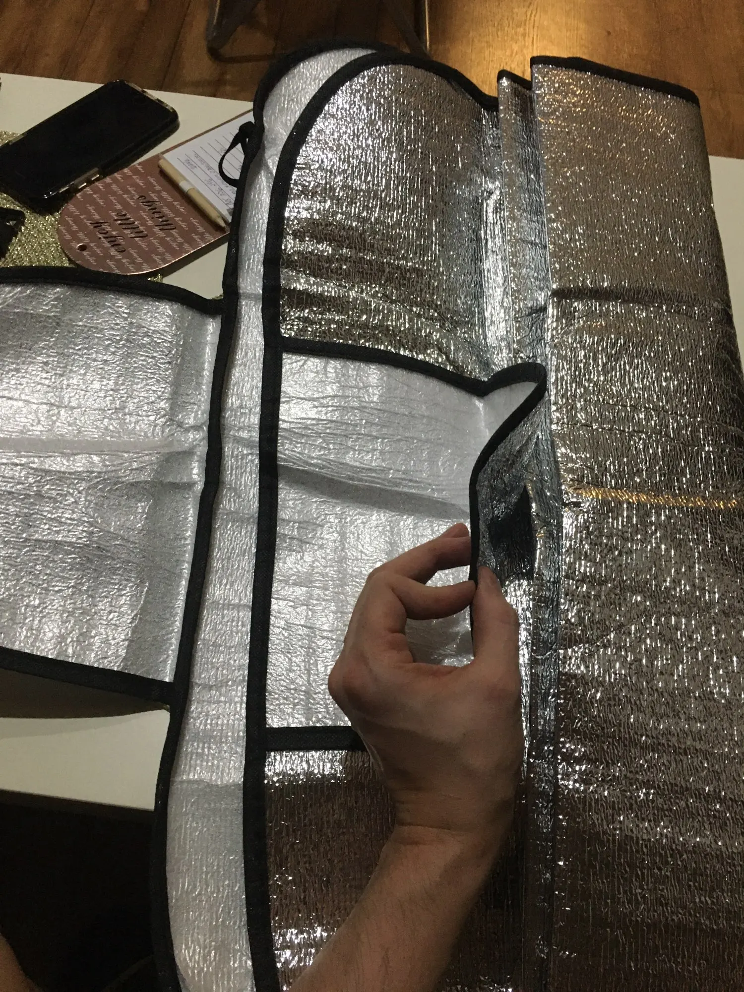 Описание товара обсалютно не соответствует , на фото простяженная, многослойная, тканевая накладка на лобовое стекло автомобиля. А по факту прислали кусок строительного утеплителя с непонятными ушами! Не заказывайте, это обман. Открыл спор, деньги вернули.