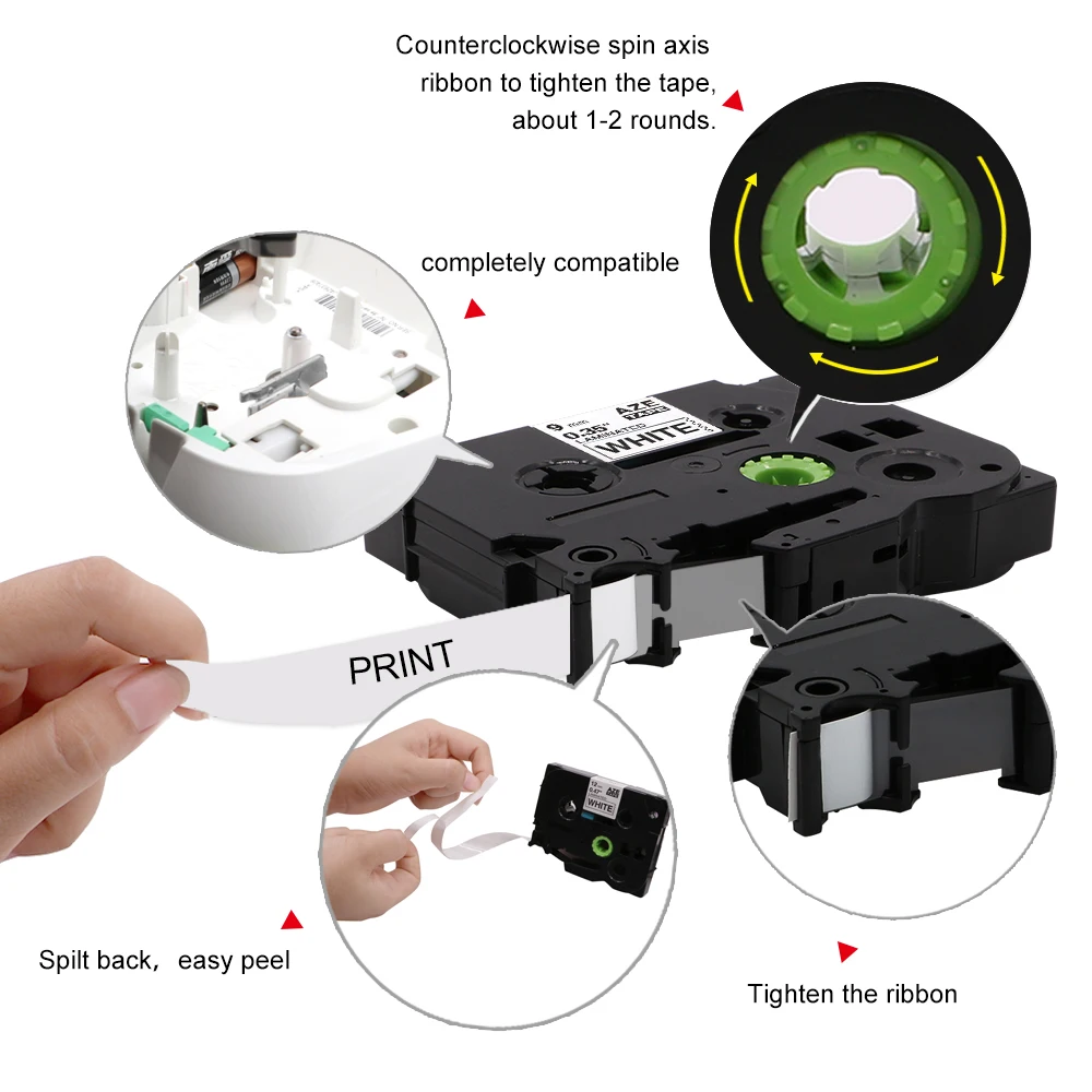 Labelife 6 мм tze211 лента для фотографий TZe211 TZ211 TZe 211 совместимая с Brother P-Touch устройство для изготовления этикеток черные на белых лентах для принтера