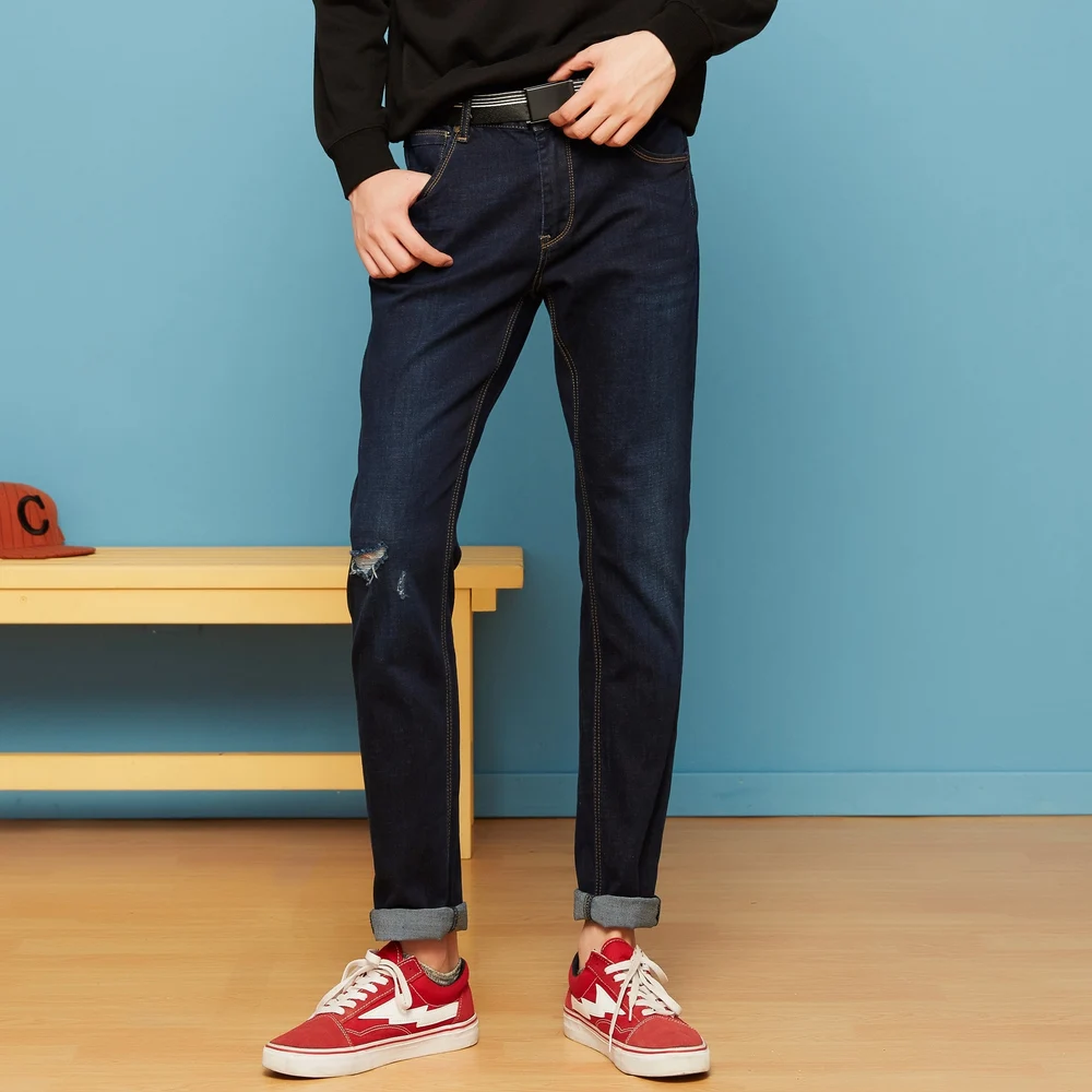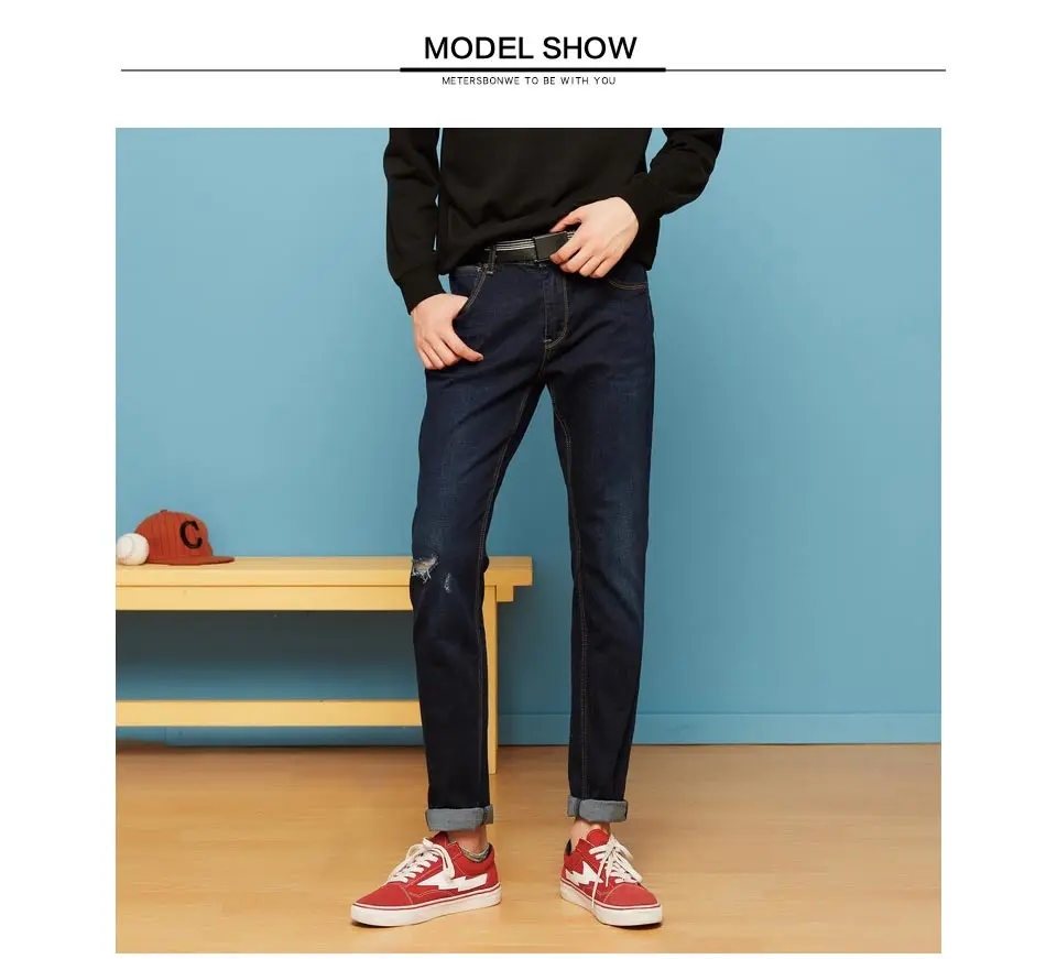 Мужские прямые джинсы Metersbonwe, повседневные джинсы с дырками, Осенние Молодежные джинсы с дырками, мужские брюки