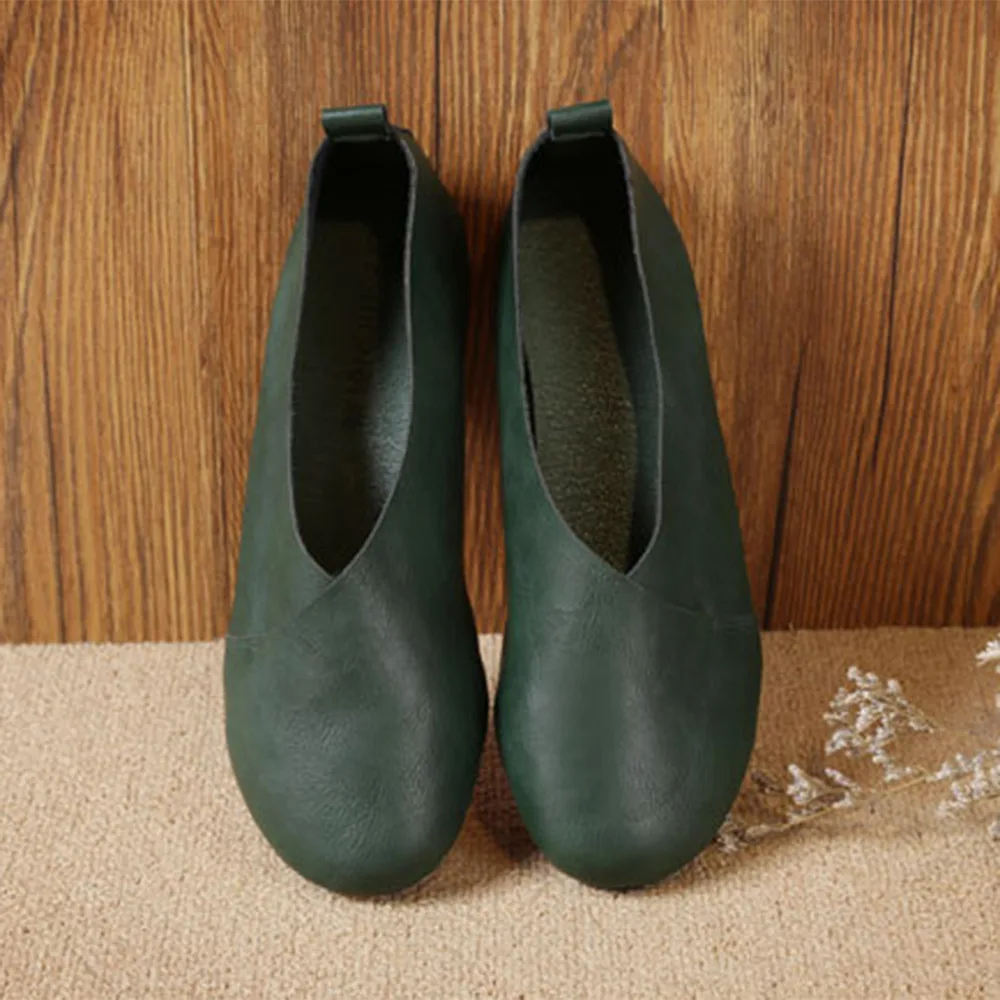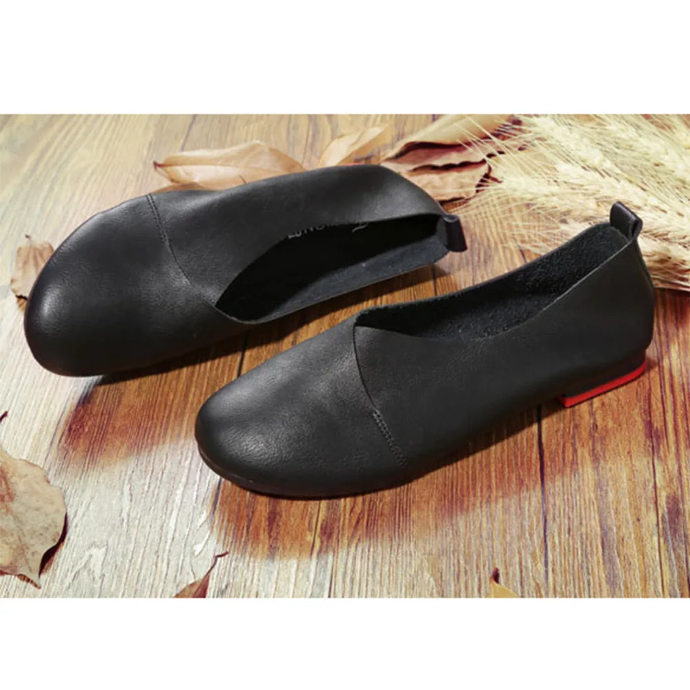 2020 Genuine Leather Flat Shoes Woman Hand-sewn Leather Loafers Cowhide Flexible Spring Casual Shoes Women Flats Women Shoes
