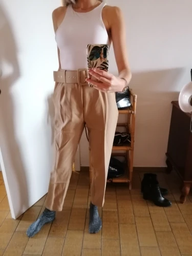 zajebiste spodnie ♡ nie prześwitują, jakość bardzo dobra.zapinane na guzik, zasówkę i rozporek.pasek w zestawie.na 160 cm,55 kg talie 75 cm i biodra 93 cm rozmiar M jest perfekcyjny.zgodnie z tabelą w aukcji.Na codzien nosze rozmiar S i alliexpressowe M jest super.Polecam.Dostawa miesiąc.☆☆☆☆☆