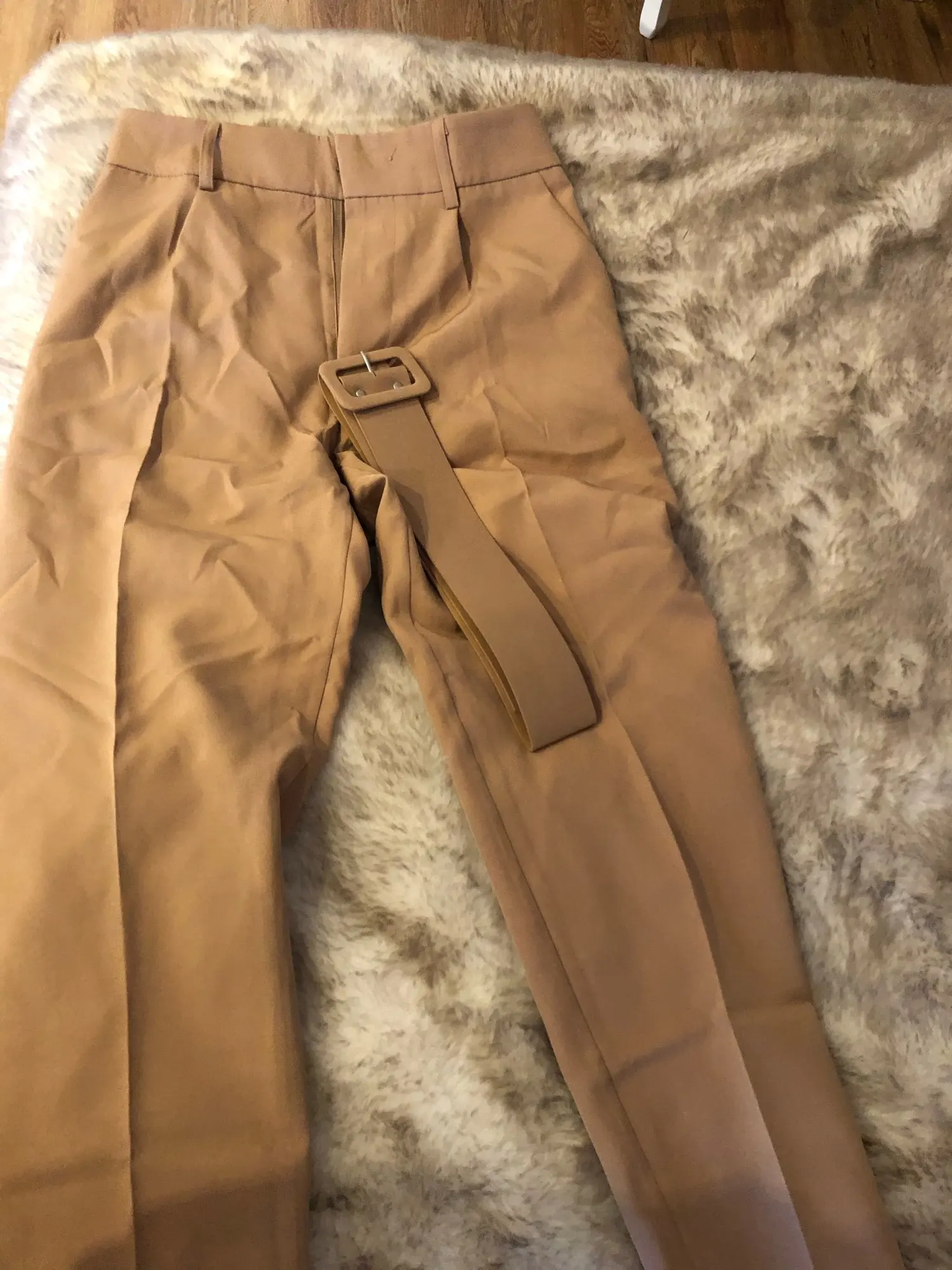 Мои параметры: ОТ-61 и ОБ-82. Взяла самый маленький размер. В талии велики немного, ремень такой же, на бёдрах не в обятг, свободно. Боялась, что будут большими, но с другим ремнём сидит идеально. На рост 164 длина идеально подошла. Цвет светло бежево розовый. Ткань тонкая, нитки не торчат. Рекомендую.