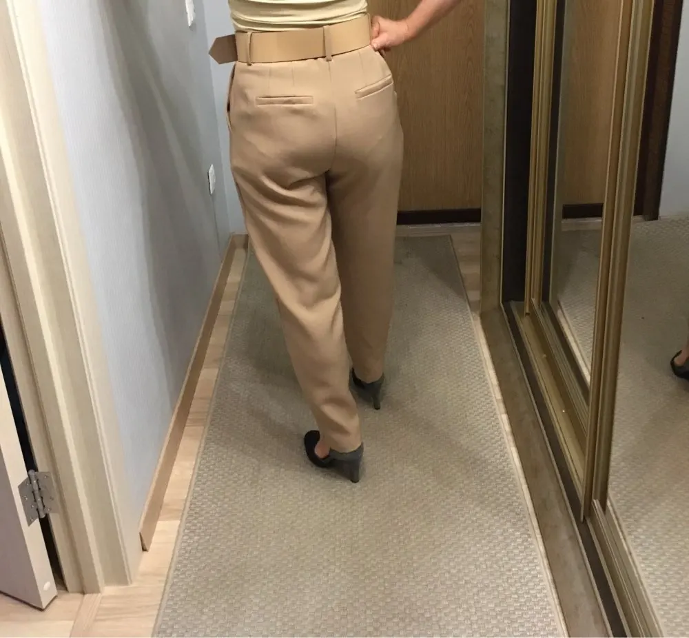 Брюки просто супер! В размер. Сидят шикарно. Ткань хорошая.