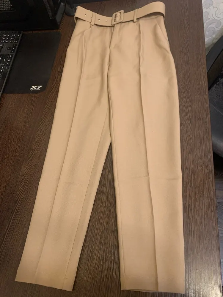 Очень классные брюки, но мне они оказались огромные, даже размер xs. Если вы маленькая и худенькая, то я не советую их заказывать. А так, брюки великолепные. Доставка была в постамат, дошли за 3 дня!