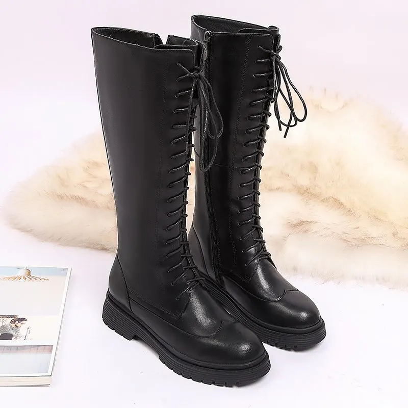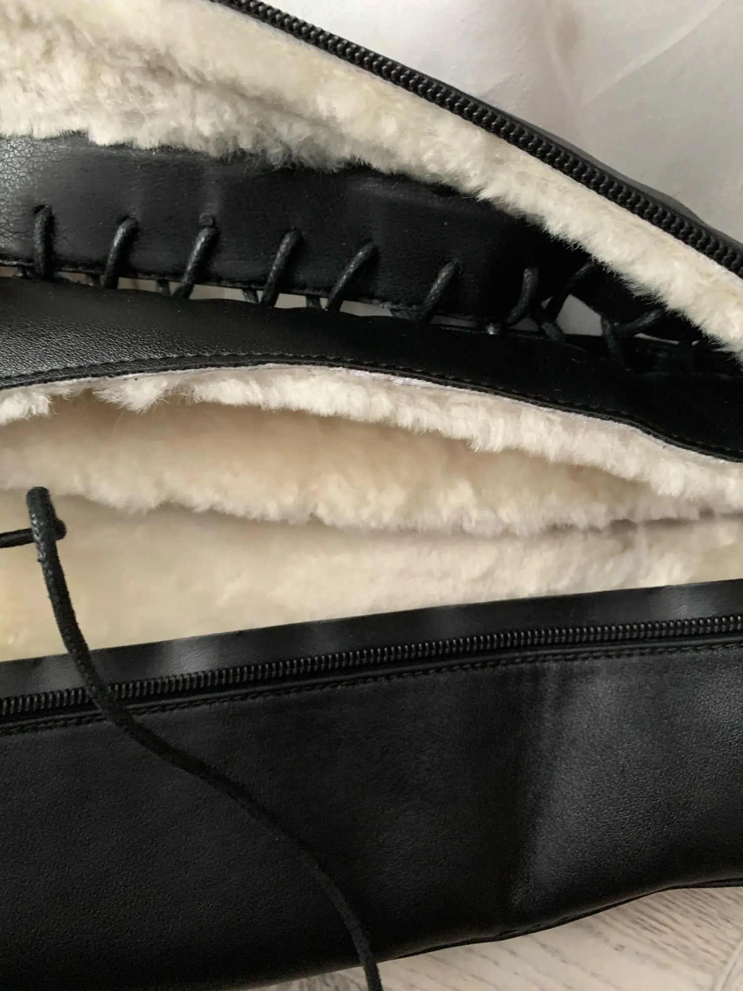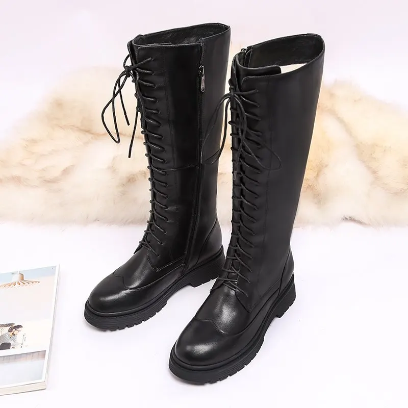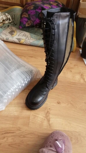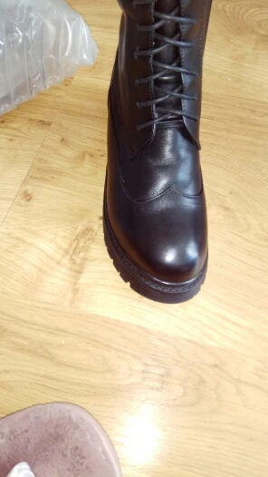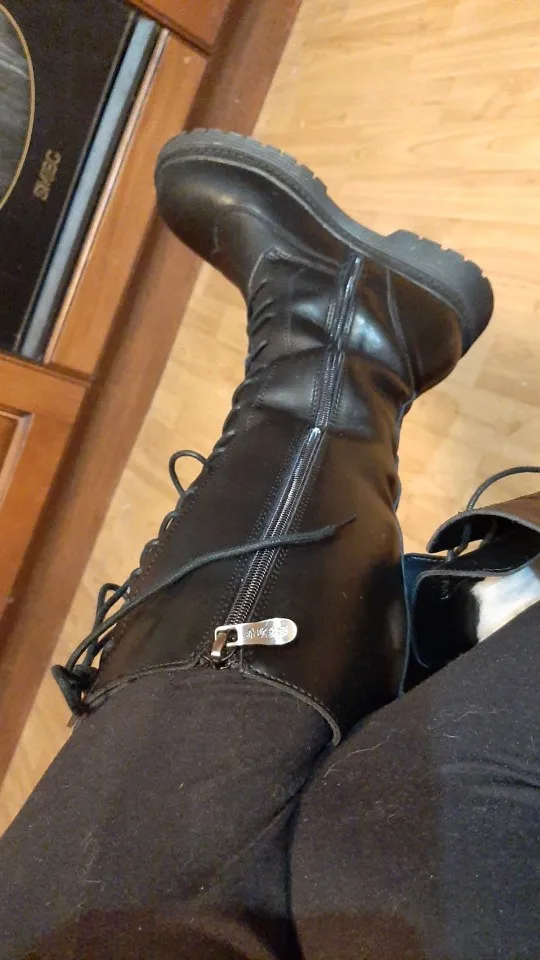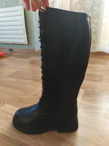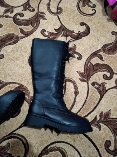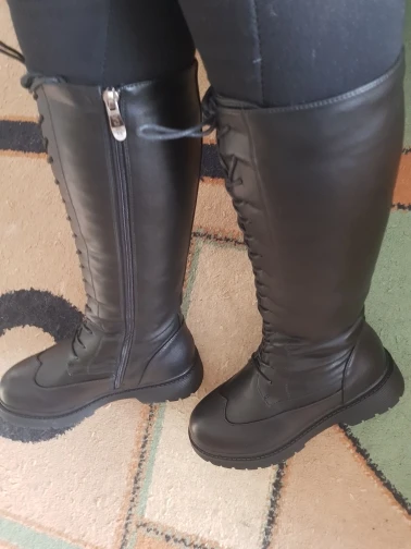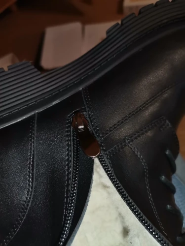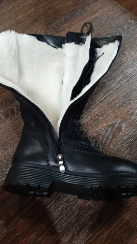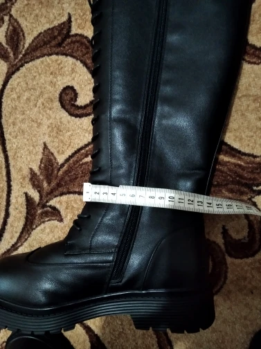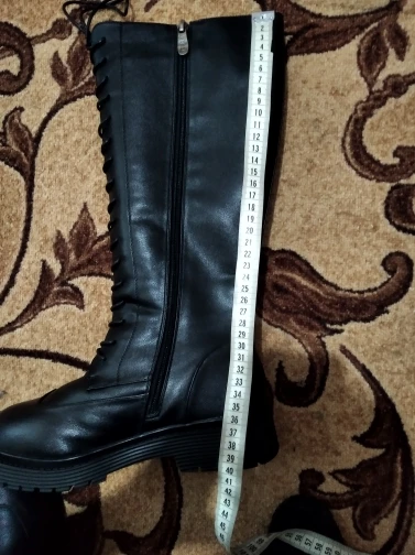 Всем здравствуйте! Качеством сапог была приятно удивлена. Кто пишет, что голенища не кожаные - не верьте. Срезы все открытые, как и положено у кожаной обуви, всё прекрасно видно. Не кожа только внутри на обтачках вокруг меха, но это у всех сапог так бывает. Кожа хорошая, плотная и мягкая. Сапоги не такие уж тяжелые. Подошва хорошая, мягкая. Размер соответствует полностью. На 36 размер всегда зимнюю обувь покупаю 37. И сейчас купила 37, можно даже на более толстый носок. Очень удобная колодка, хорошо садятся на высокий подъём. На ноге фотографировать не стала, но сделала фото, где вшита молния. Все очень аккуратно. В Москву шли неполных три недели. Довольна, давно искала сапоги полностью на шнуровке, так как ноги очень полные. Спасибо китайцам, как бы мы без них обувались!