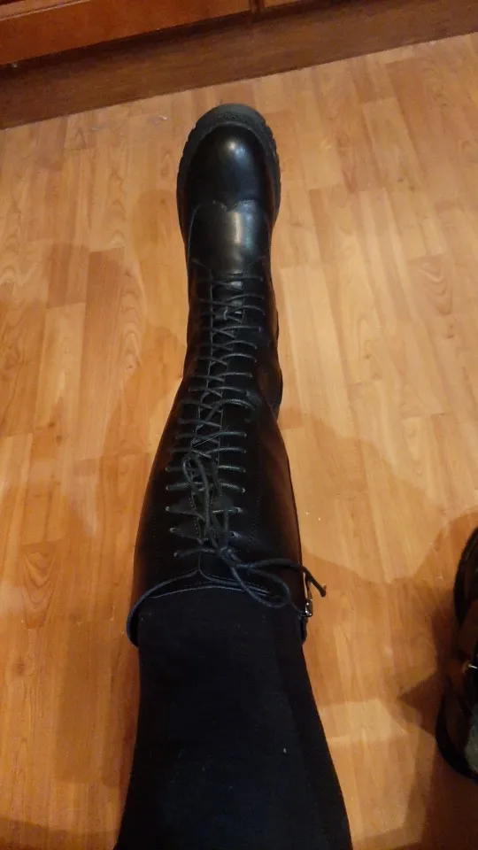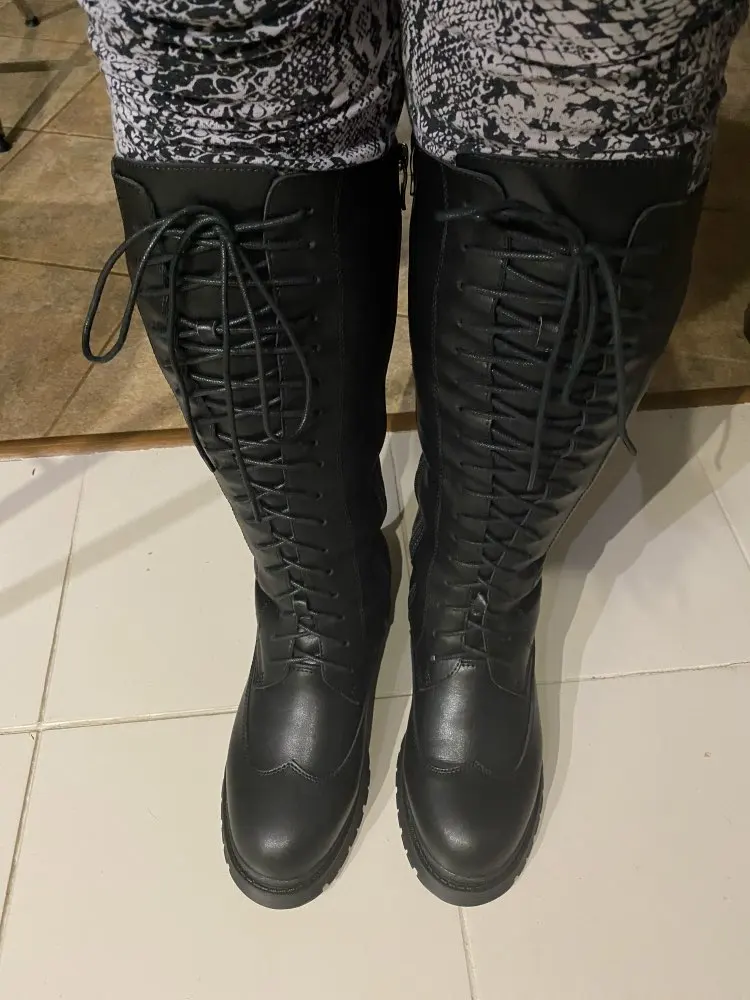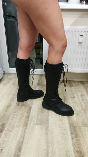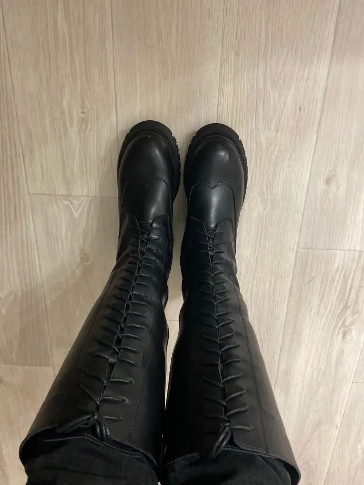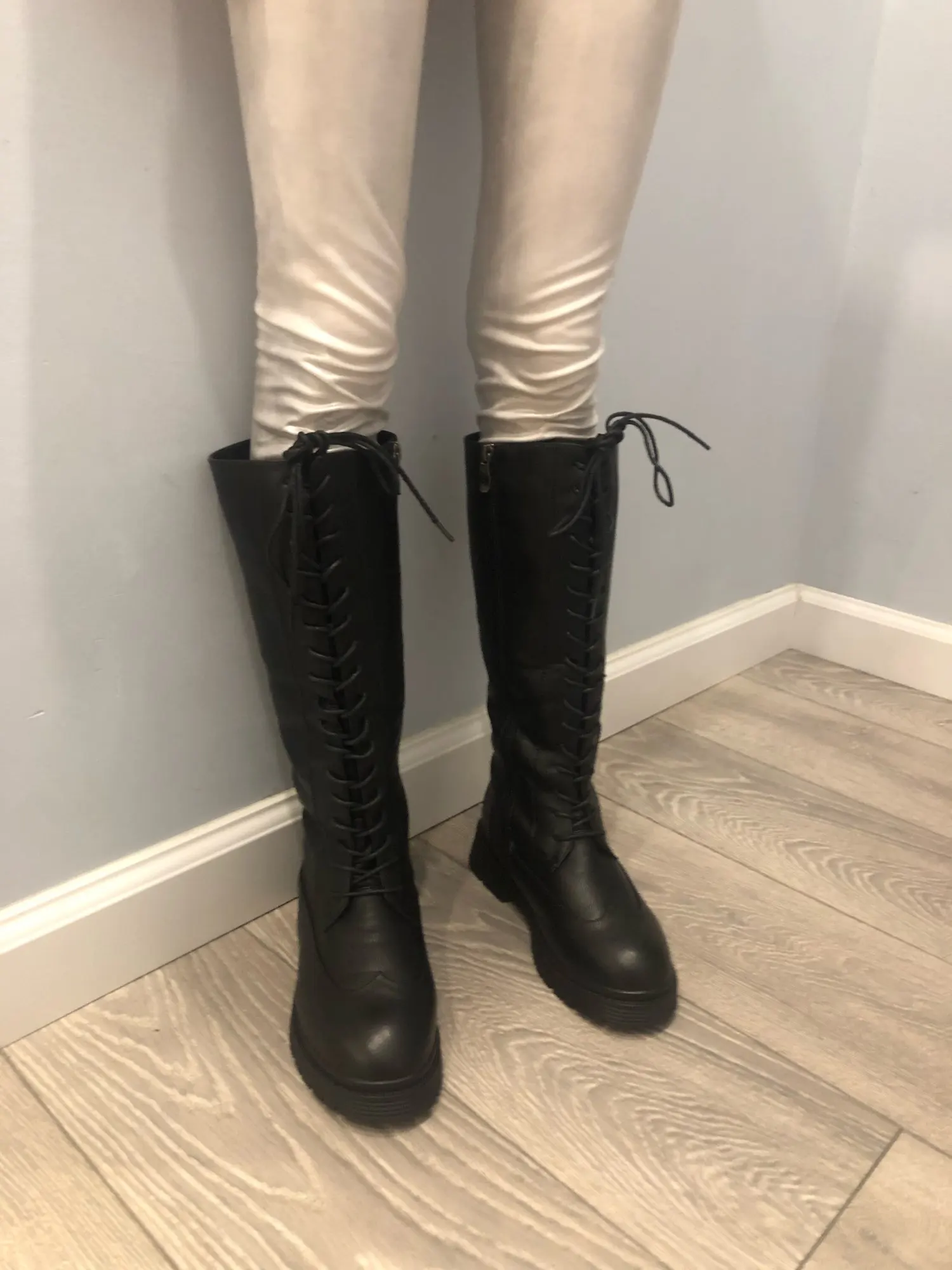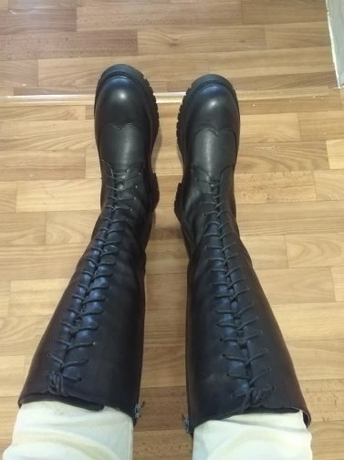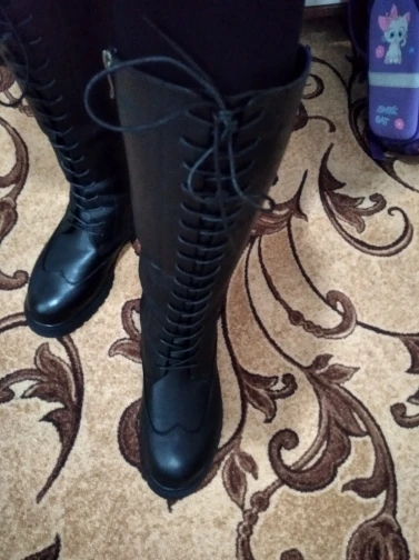 Выглядят хорошо, качественно. Кожа натуральная. На 39 размер взяла 11 и ошиблась . Они очень большие и широкие в голени. Надеюсь шнуровкой спереди смогу отрегулировать полнот. Есть только один минус - сапоги очень тяжелые по весу.