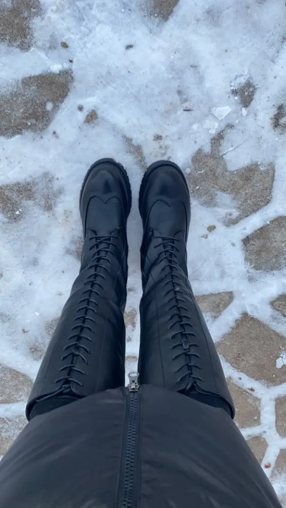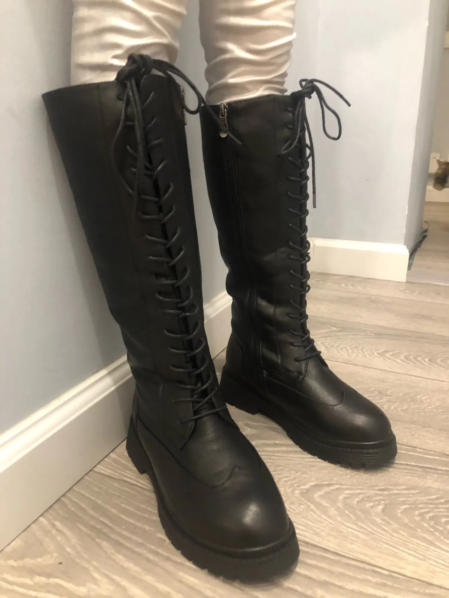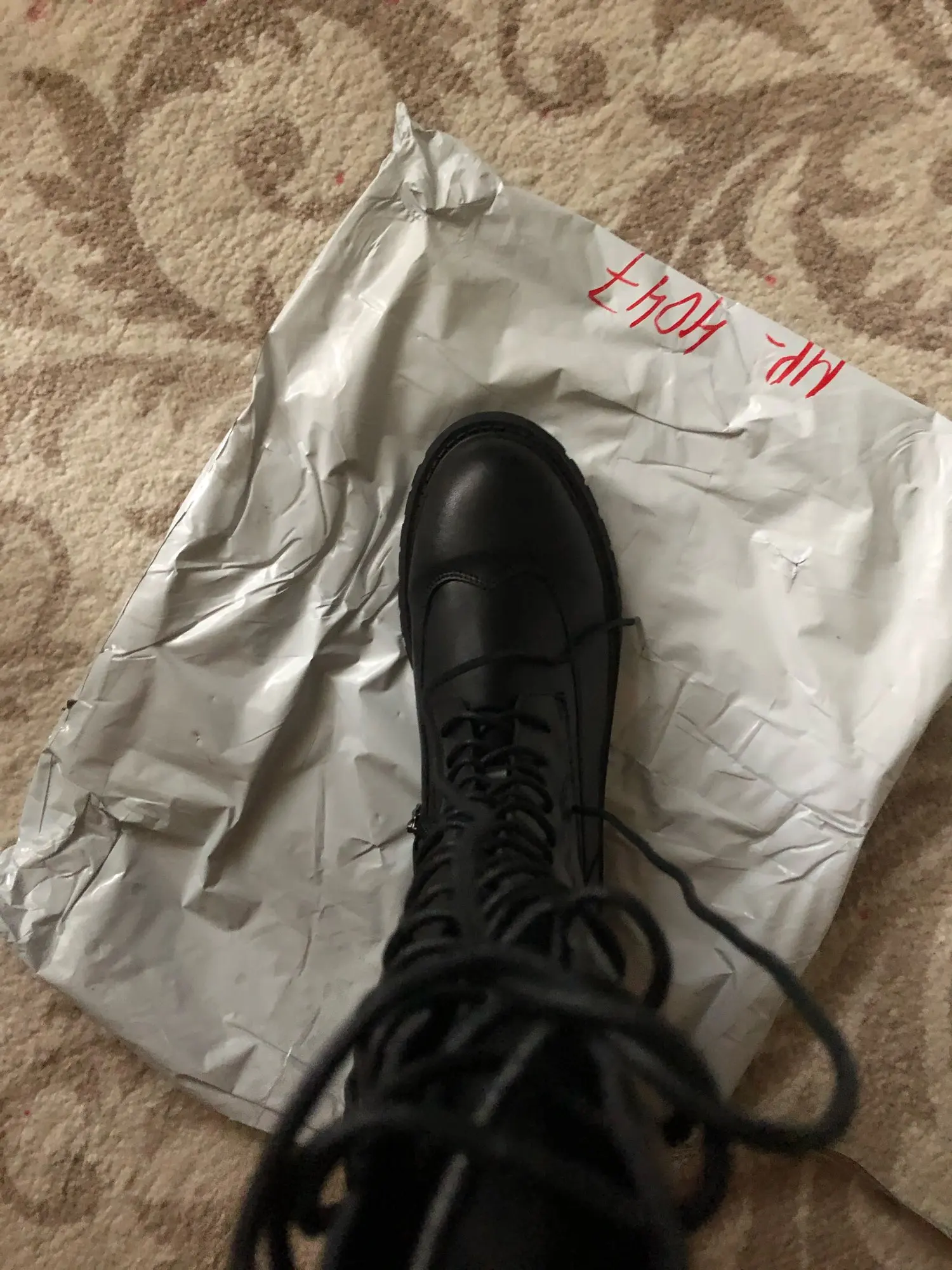 Шикартные сапоги! Это уже Третья пара из этого магазина и я безумно довольна каждой из них. Сапоги на натуральном овечьим меху, очень тёплые очень стильно смотрится шнуровка. Размер подходит идеально на стопу 25 см 39-й европейский размер подошло прям супер, можно надеть носок, но не очень толстый, потому что в нём даже нет смысла, так как мех очень тёплый и толстый. Больше Видеообзоров и много всего интересного в моем инстаграм @ali.s.julli Подписываются ради шмоток, а остаются сердцем