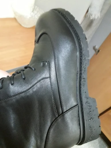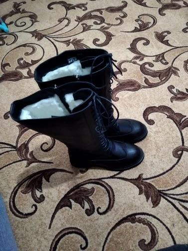 В целом мне ботинки понравились, однако они немного толще, чем кажется на фото. Тем, у кого нога потолще, будет как раз, наверное. Также хоть и написано, что это настоящая кожа, они выглядят как кожзамчик, что за такую цену ожидаемо вполне, в прочем. Но все эти минусы окупает то, что они реально тёплые, а это главное, что мне в Сибири нужно от зимних ботинок. До 15 градусов ножкам вообще тепло, как дома. Не в первый раз покупаю обувь у этого продавца, всегда доставляют быстро, надежно упакованно и без брака. Могу смело рекомендовать этот магазин.