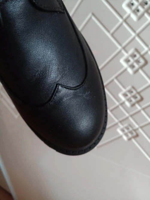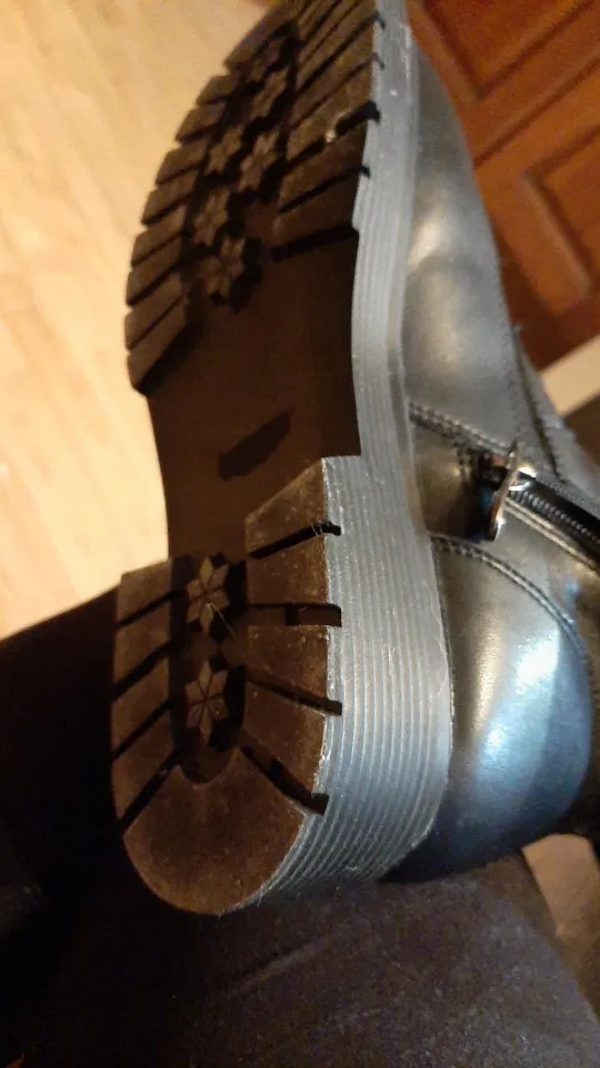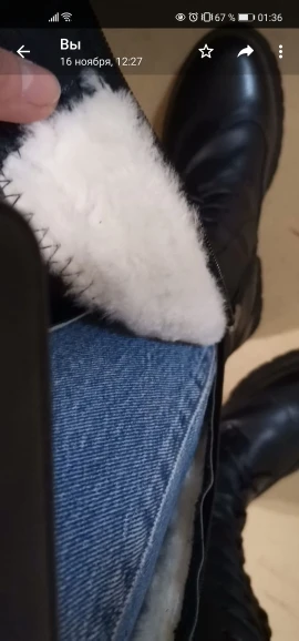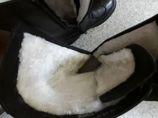 Продавец заявляет, что это коровья кожа. Но кожа там, товарищи, только на мыске! Остальное кожзаменитель! Под лупой хорошо видны волокна ткани как основа для полиуретана, вместо кожи. Все края подвёрнуты и прострочена, а так делают на кожзаменителе. Настоящую кожу прострачивают вдоль среза, и виден настоящий обрезанный край. Внутри реально толстая натуральная овчина! Сапоги тёплые, не скользят. Я открыла спор, часть денег вернули. Почему вообще я купила такие дорогие сапоги? Думала, будут хорошие, натуральные, качественные! А кожзам я и за 2000 купить могу. Но хотела кожу!