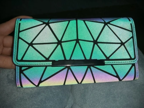 кнопка.магнит на кошельке не застегивается.брак.упаковано хорошо.доставка супер быстрая.других видимых браков нет.продавца рекомендую.в общем заказом довольна.растроена браком кнопки.описанию соответствует.светиться