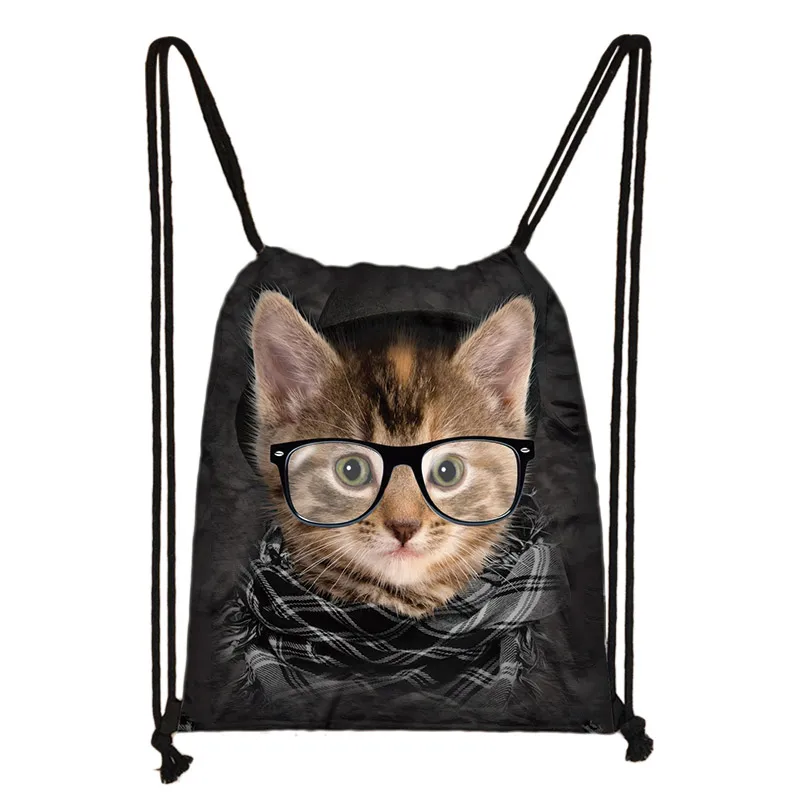 Женская сумка на шнурке, рюкзак с 3D принтом в виде цветного кота, ...