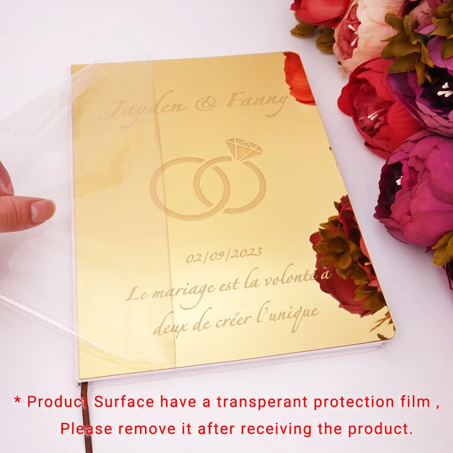 Пользовательская акриловая зеркальная книга для гостей, двойное кольцо с бриллиантами, свадебная подпись, гостевая книга, персонализированный декор для событий и вечерние
